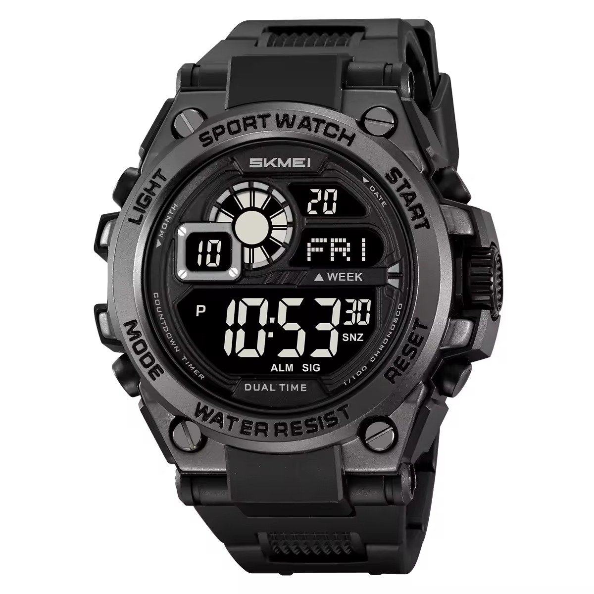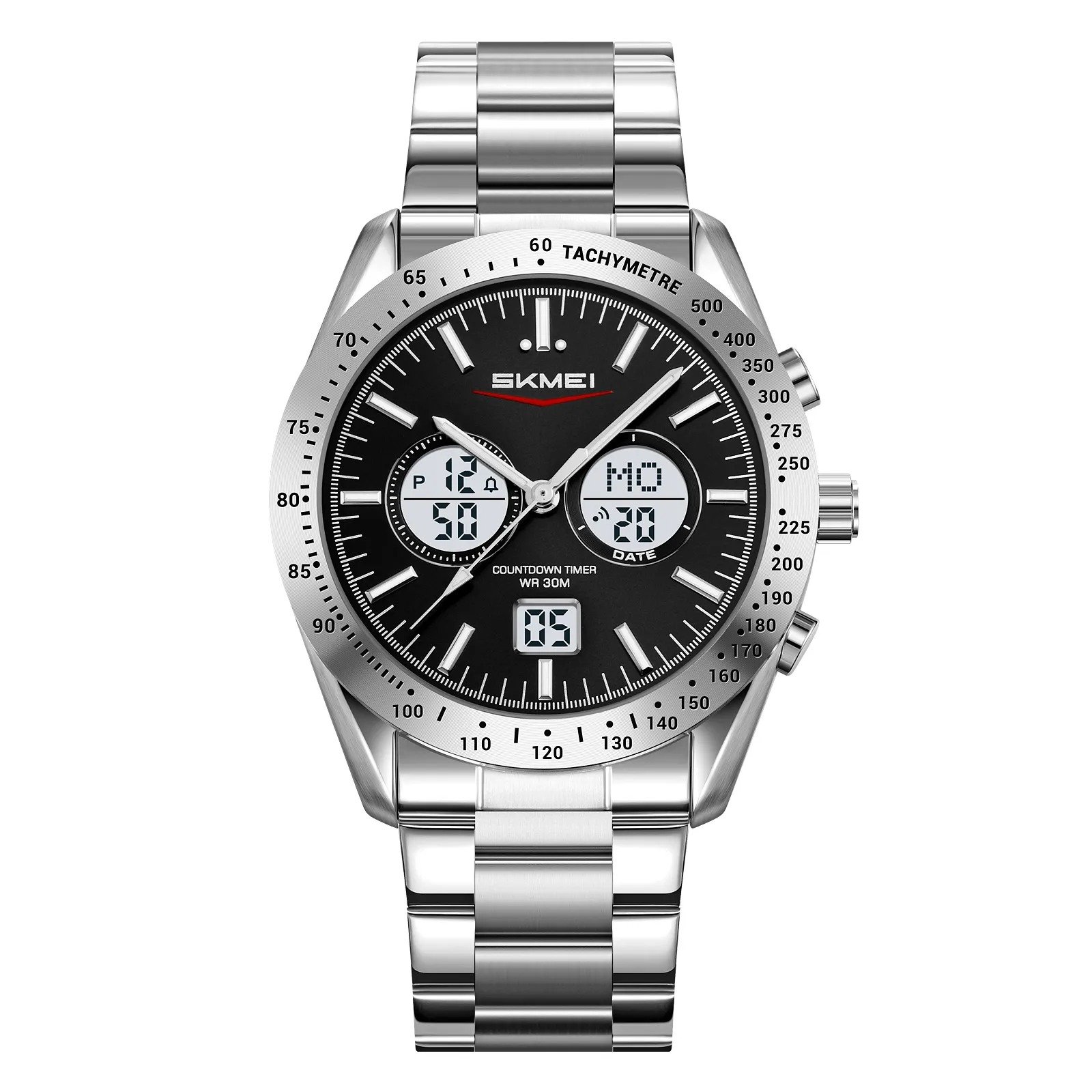 SKMEI 2503 Digital Tachymetre Countdown Timer Watch – silver/black/white/steel