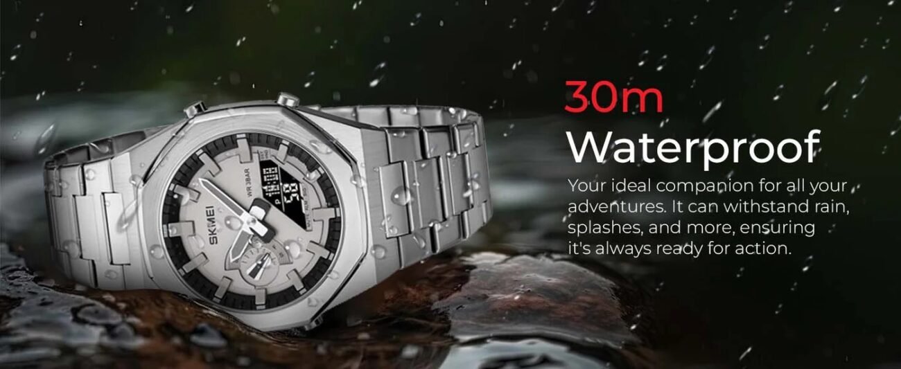 Skmei – 1652 (Chain) – Multifunctional Waterproof – Silver/White-Steel