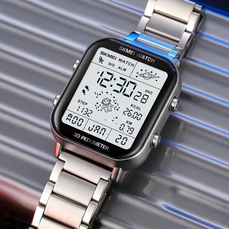 Skmei – 1888 – Digital Dial Step Count Pedometer Stainless Steel Watch – Silver