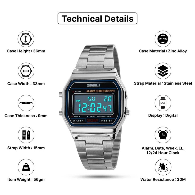 9 reviews for Skmei – 1123 – Digital Stainless Steel Watch – Silver
