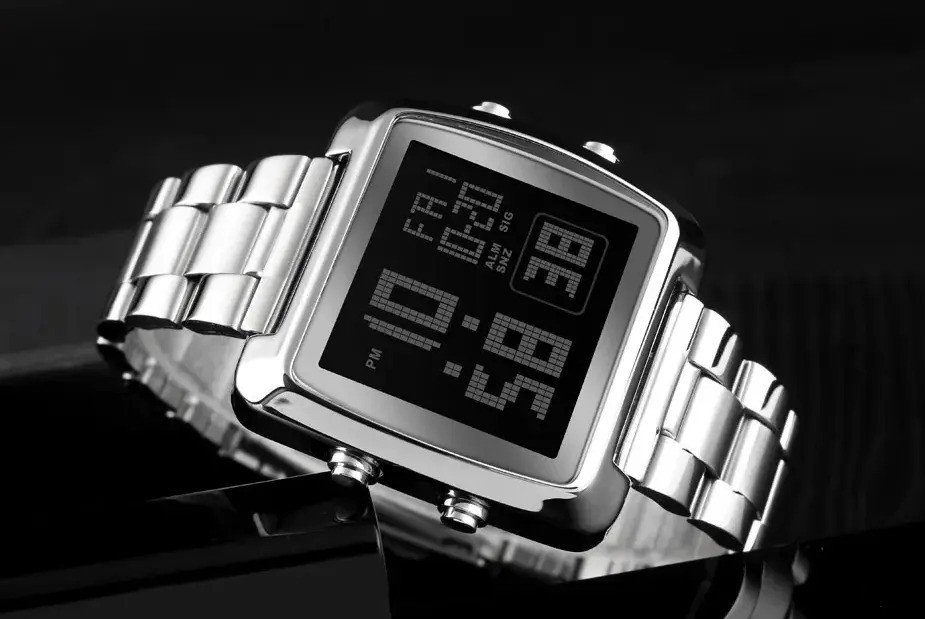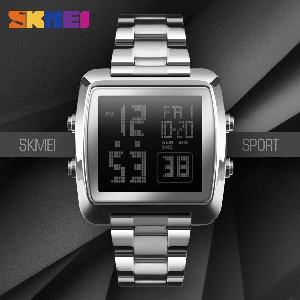 Skmei – 1369 – Digital Luxury Gents Stainless Steel Watch – Silver