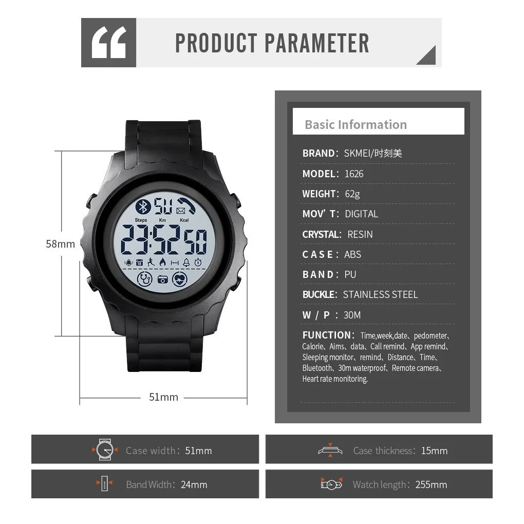 Skmei – 1626 – Health Tracker Digital Watch – Black/White