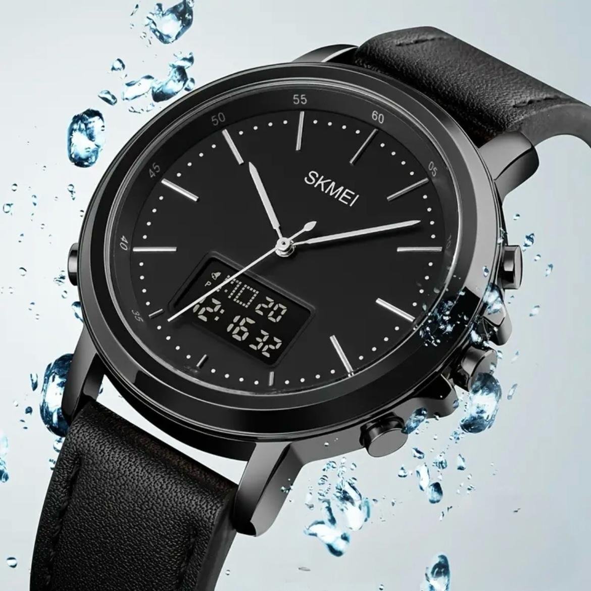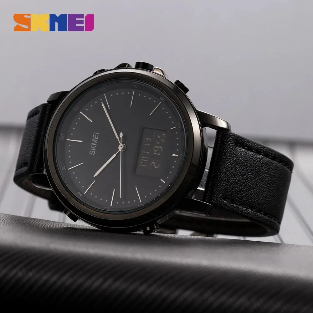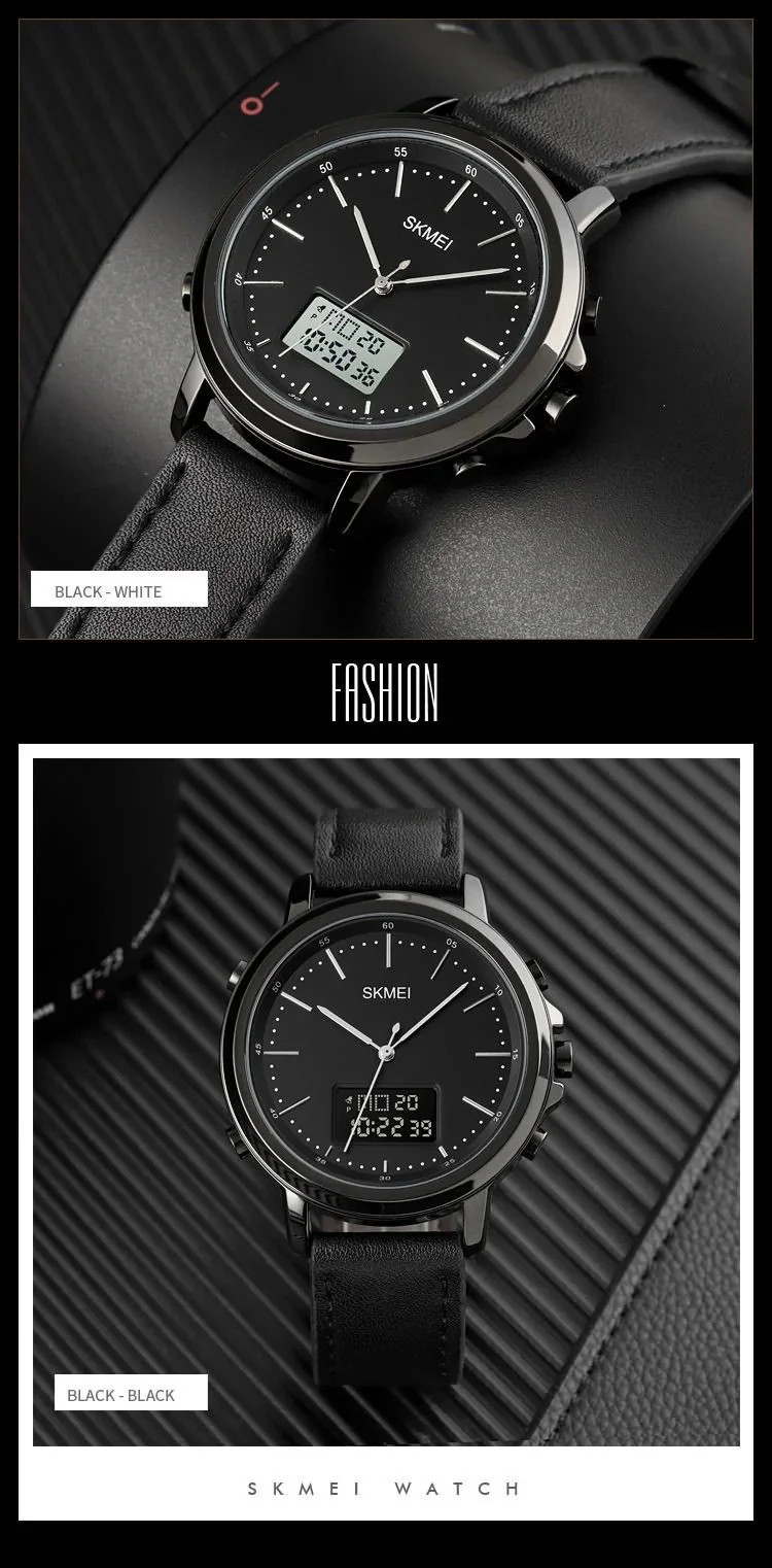 Skmei – 1652 (Strap) – Multifunctional Waterproof – Black/Black-Leather