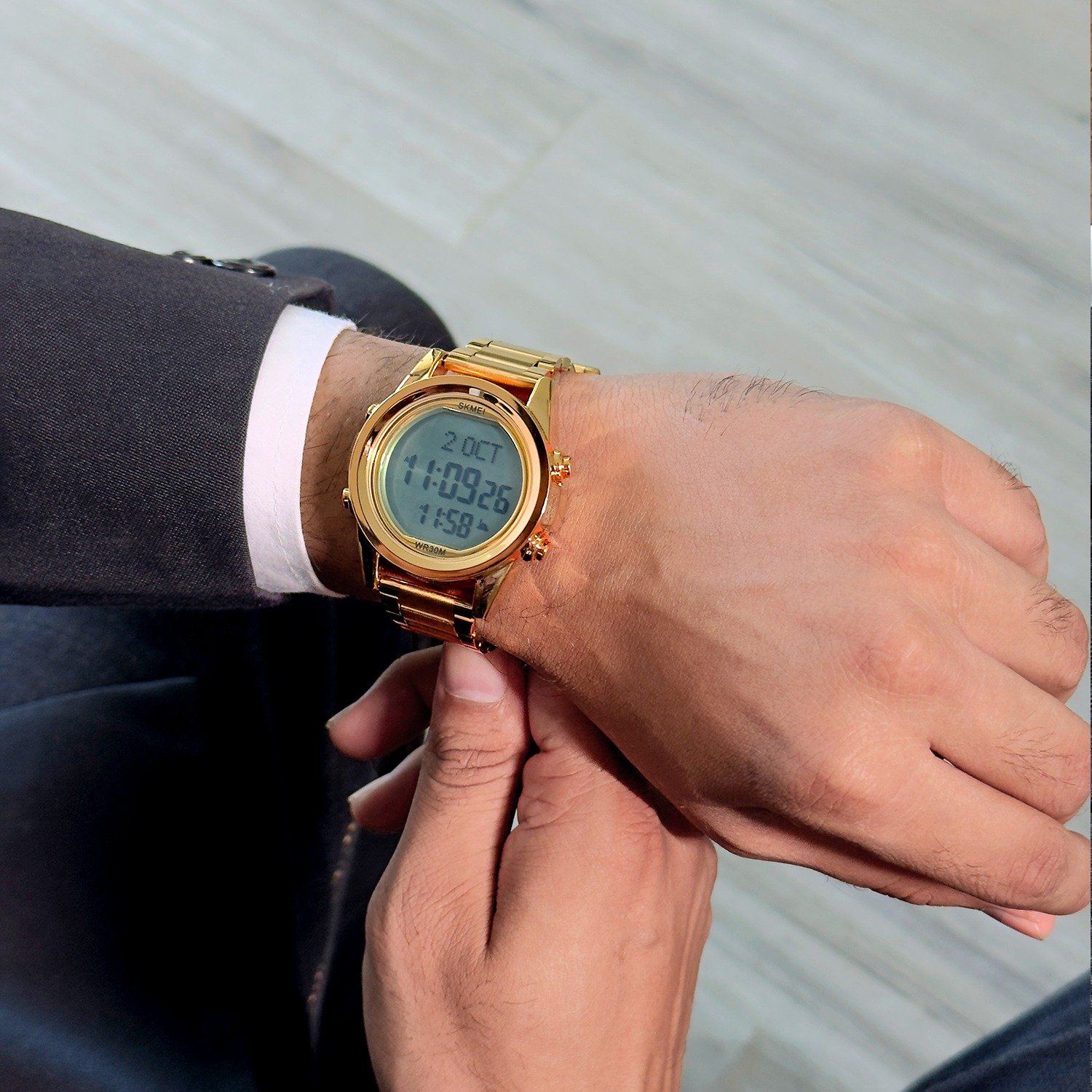 Skmei – 1667 – Qibla Azan Time Reminder Prayer Watch – Gold/White