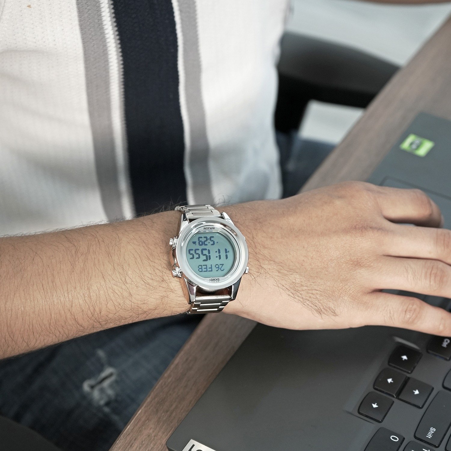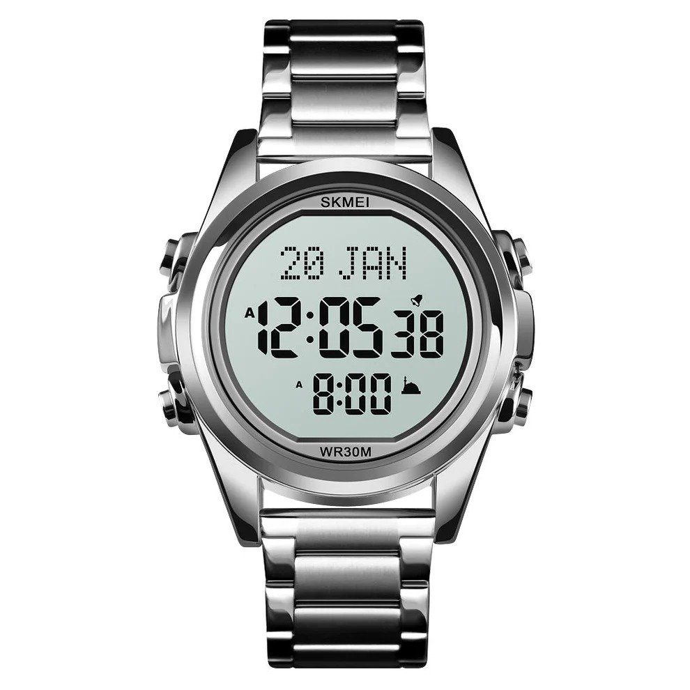 SKMEI – 1667 – Qibla Azan Time Reminder Prayer Watch – Silver/white