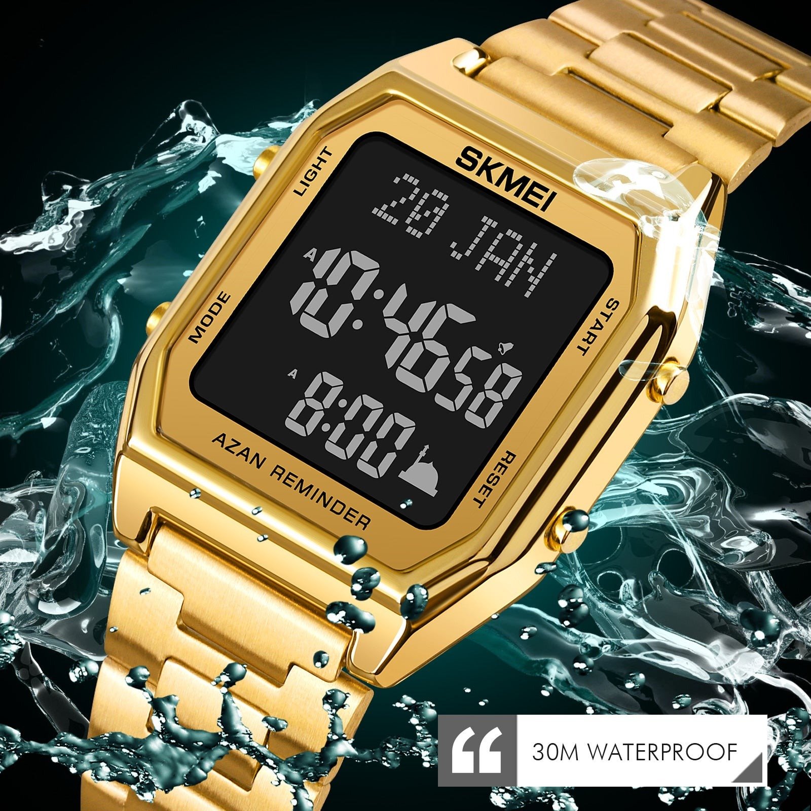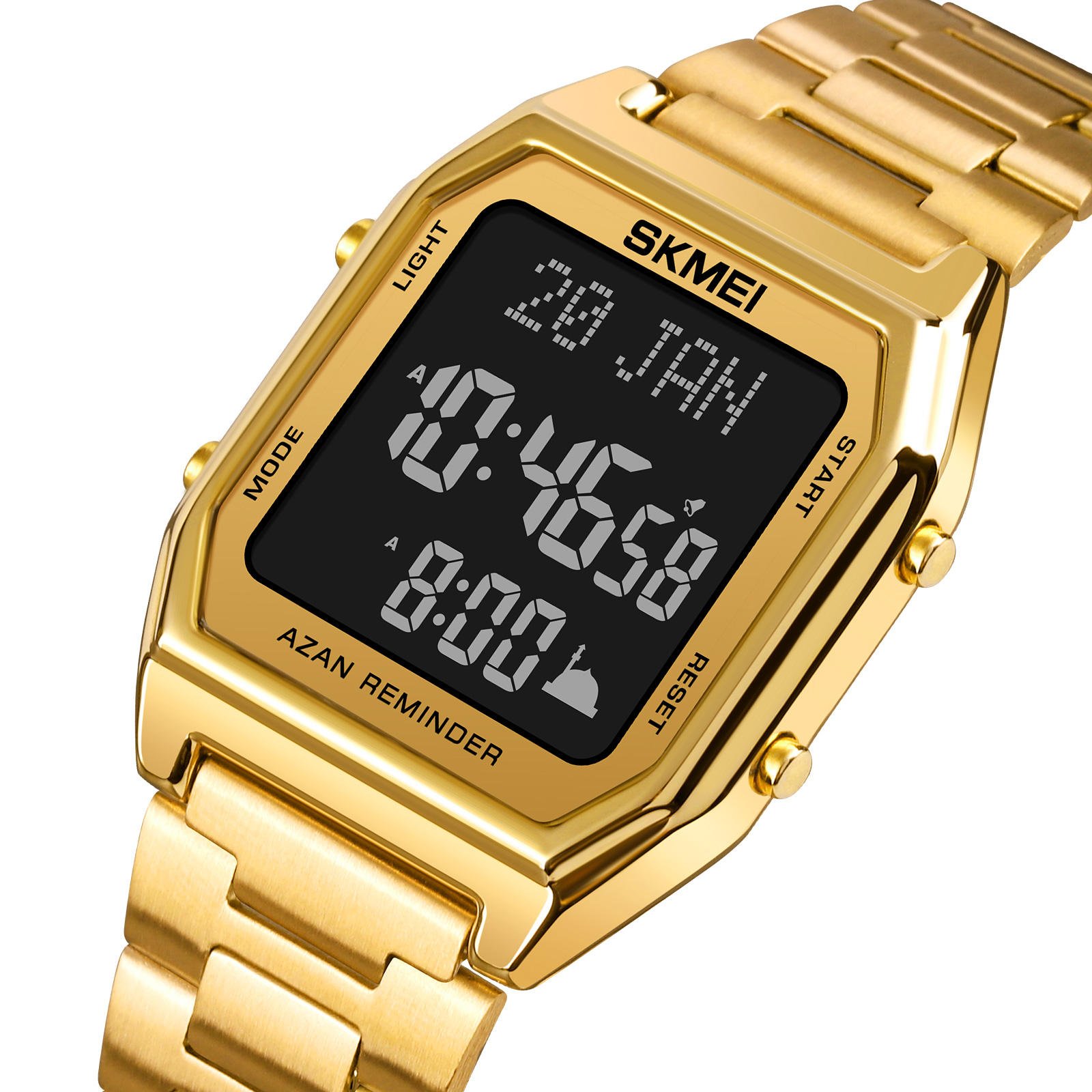 🛠 Functions: Azan Reminder, Qibla Direction, Hijri & Gregorian Calendar, Prayer Alerts, Alarm, Date, Week, EL Light, 12/24Hr Clock