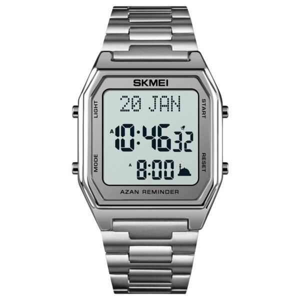 SKMEI – 1763 – Qibla Azan Time Reminder Prayer Watch – silver black