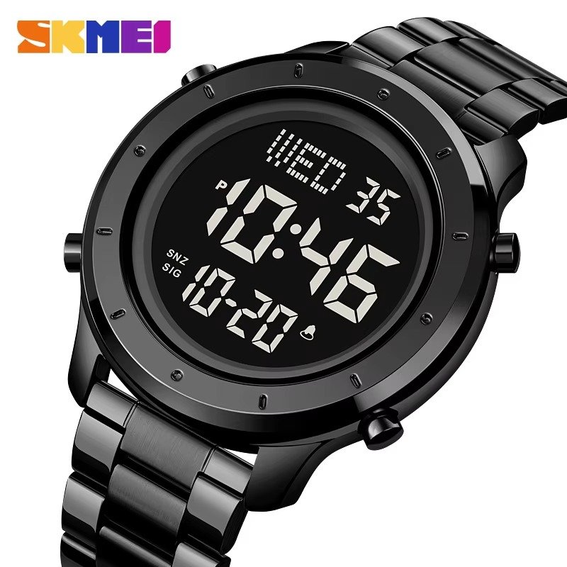 SKMEI – 1864 – Digital Stainless Steel Luminous Waterproof Watch – Black/Black-Steel