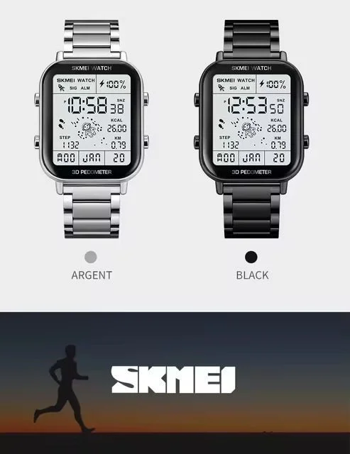 Skmei – 1888 – Digital Dial Step Count Pedometer Stainless Steel Watch – Black