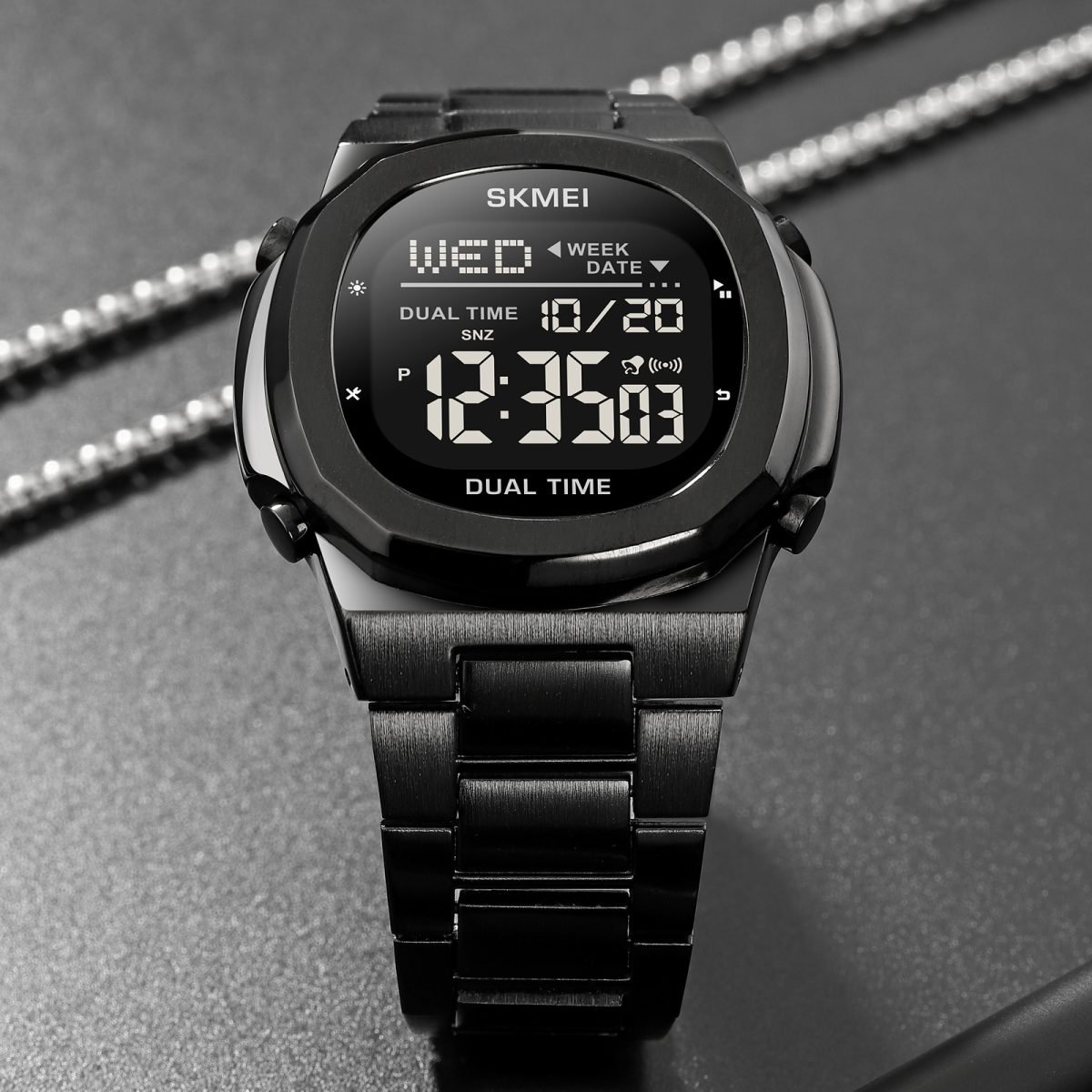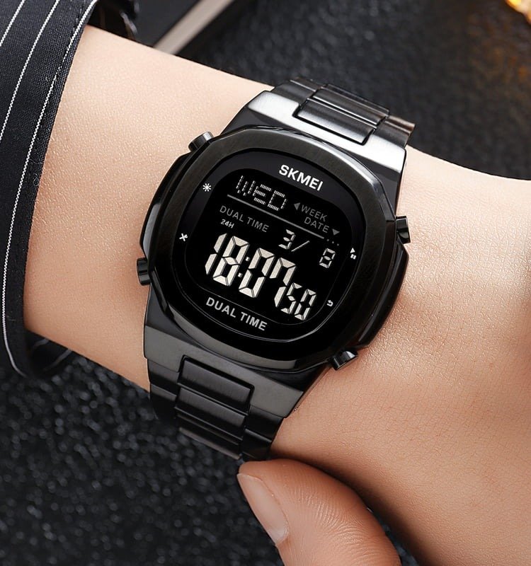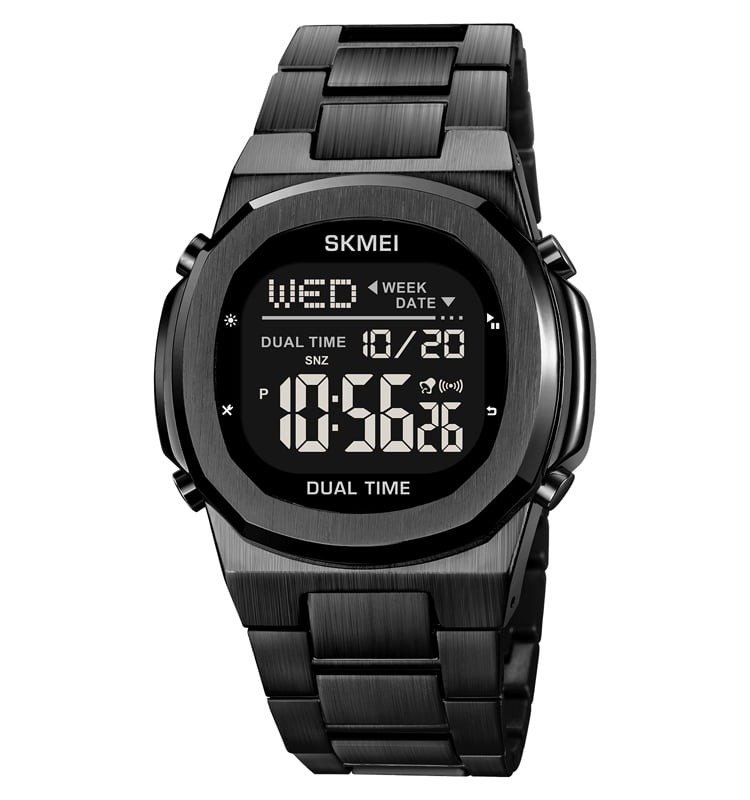 ⌚ SKMEI 2004 – Digital Dual Time Watch ⚙️ Movement: Digital⚖️ Weight: 97.4g🔍 Crystal: Glass🧱 Case: Zinc Alloy🔗 Band: Stainless Steel🔒 Buckle: Stainless Steel💧 Waterproof: 30M📐 Case Size: 42.4 × 47mm📏 Thickness: 10.9mm📎 Band Width: 17mm📏 Watch Length: 200mm ✨ Functions:🕐 Dual Time (2 Time Zones) | ⏱️ Chrono | ⏰ Alarm📅 Date & Week | 🔦 EL Light⏳ Countdown Timer | 🕐 12/24 Hour