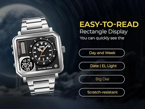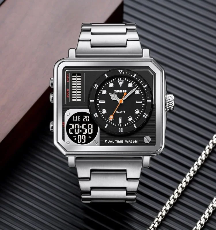 2 reviews for SKMEI – 2025 – LED Backlight Large Screen Multi-Time Zone Waterproof Watch – Silver
