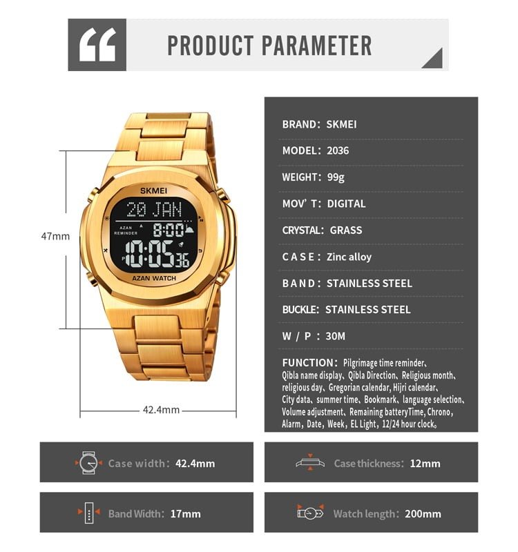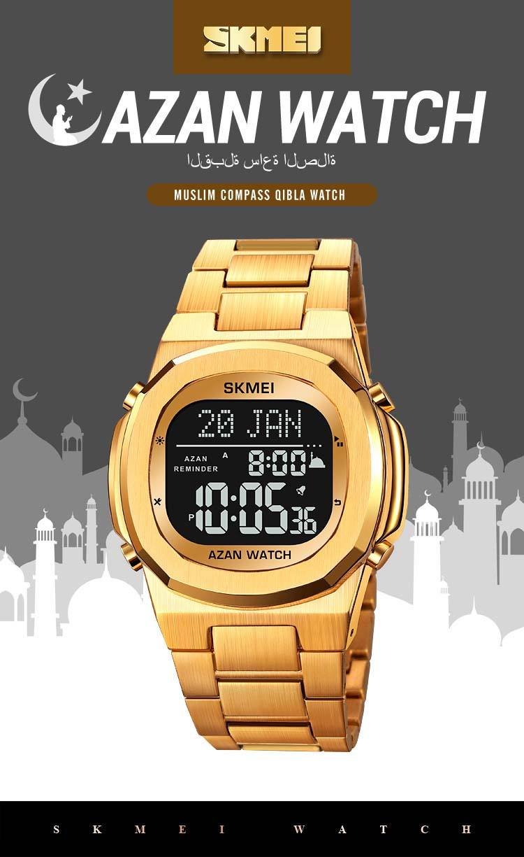 SKMEI – 2036 – Qibla Azan Time Reminder Prayer Watch – gold/black