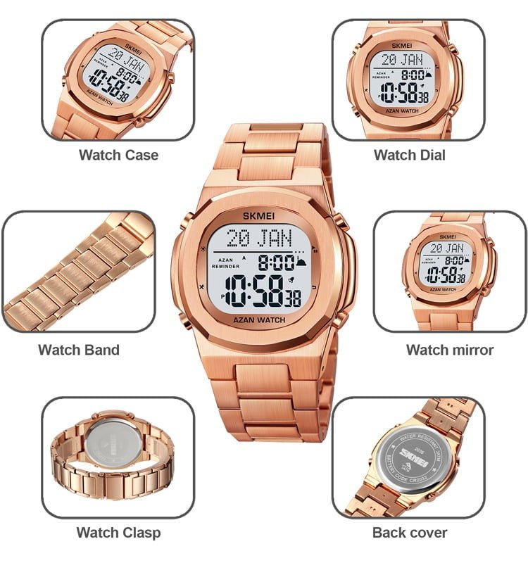 Be the first to review “SKMEI – 2036 – Qibla Azan Time Reminder Prayer Watch – Rosegold/white” Cancel reply