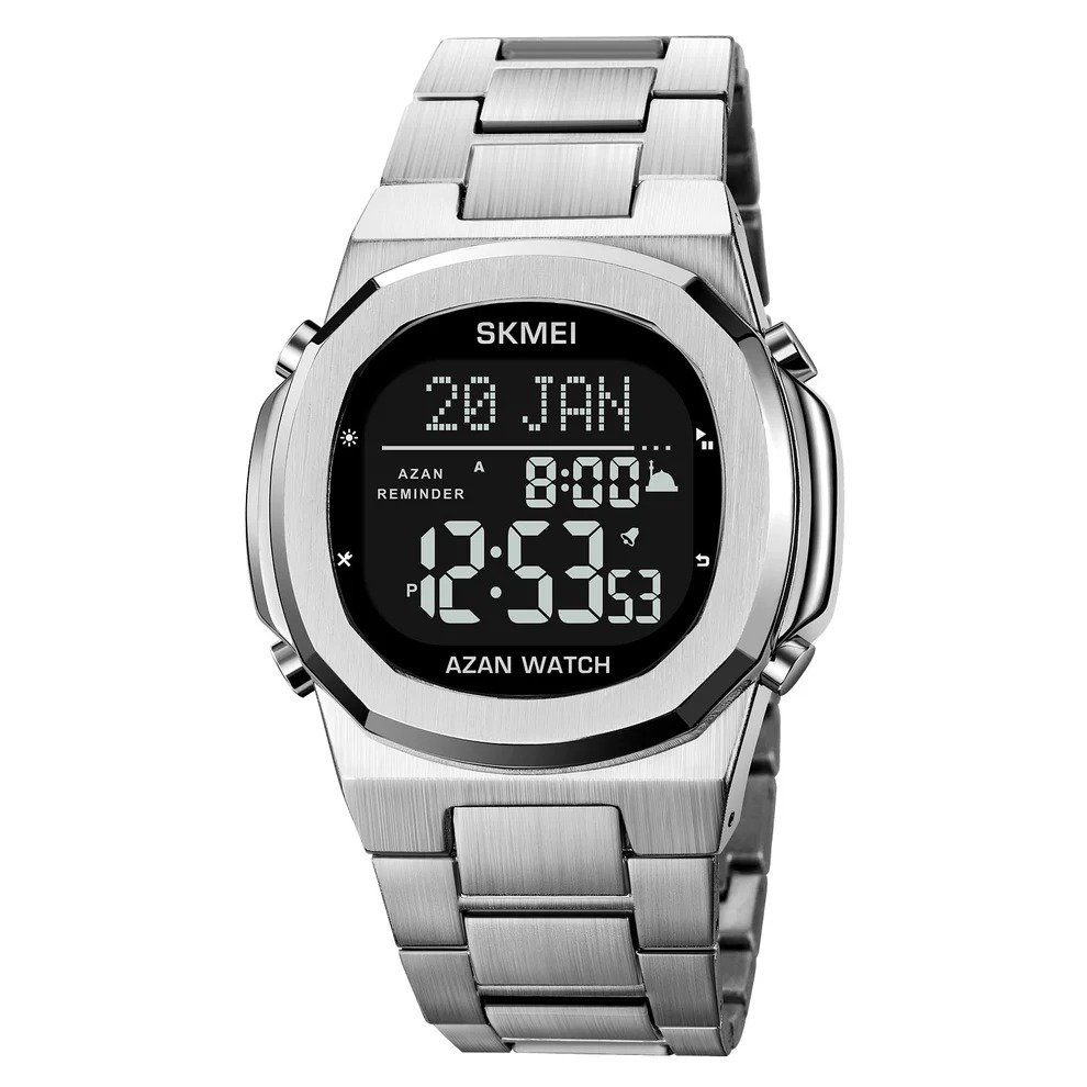 SKMEI – 2036 – Qibla Azan Time Reminder Prayer Watch – Silver/Black