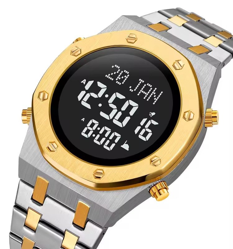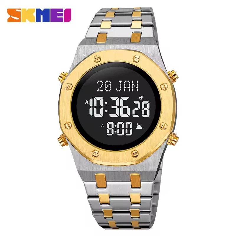 SKMEI – 2043 – Qibla Azan Time Reminder Prayer Watch – silver/gold-black