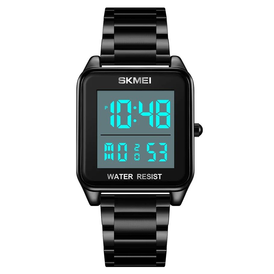 ⌚ SKMEI 2154 – Square Digital Watch ⚙️ Movement: Digital⚖️ Weight: 98.4g🔍 Crystal: Glass🧱 Case: Zinc Alloy🔗 Band: Stainless Steel🔒 Buckle: Stainless Steel💧 Waterproof: 30M📐 Case Size: 34 × 44mm📏 Thickness: 10mm📎 Band Width: 20mm📏 Watch Length: 220mm ✨ Functions:🕐 Time Display | ⏱️ Chrono | ⏰ Alarm📅 Date & Week | 🔦 EL Light | 🕐 12/24 Hour