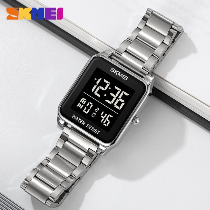 ⌚ SKMEI 2154 – Square Digital Watch ⚙️ Movement: Digital⚖️ Weight: 98.4g🔍 Crystal: Glass🧱 Case: Zinc Alloy🔗 Band: Stainless Steel🔒 Buckle: Stainless Steel💧 Waterproof: 30M📐 Case Size: 34 × 44mm📏 Thickness: 10mm📎 Band Width: 20mm📏 Watch Length: 220mm ✨ Functions:🕐 Time Display | ⏱️ Chrono | ⏰ Alarm📅 Date & Week | 🔦 EL Light | 🕐 12/24 Hour