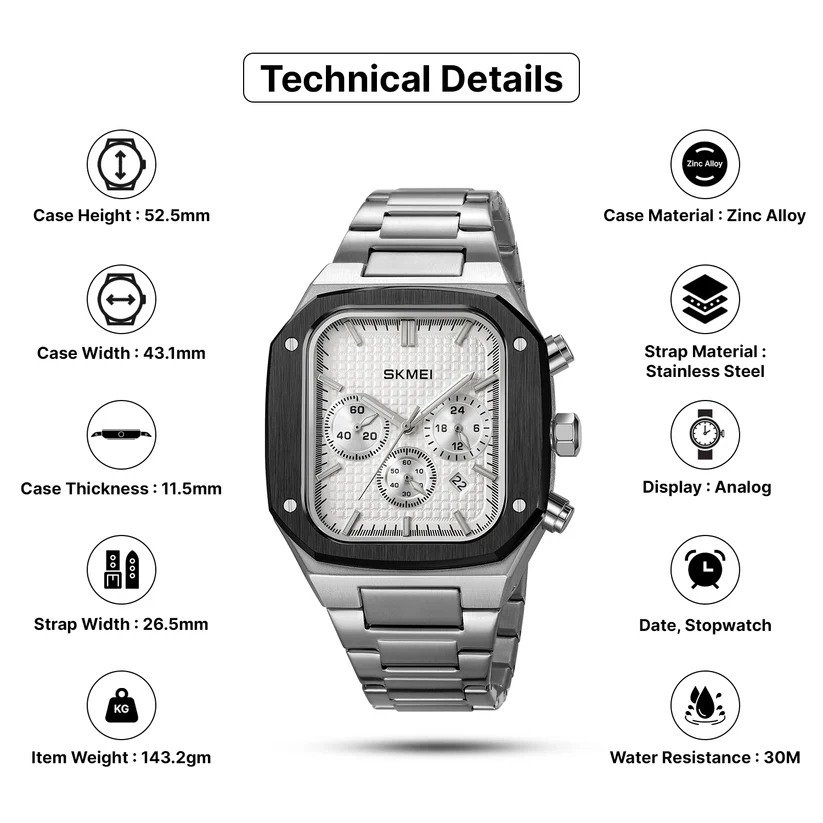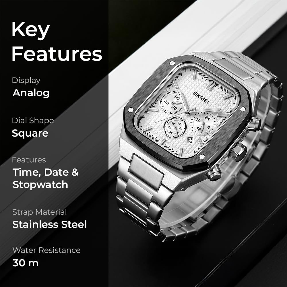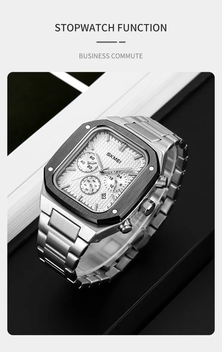 SKMEI – 2201 – Square Chronograph Watch – Silver