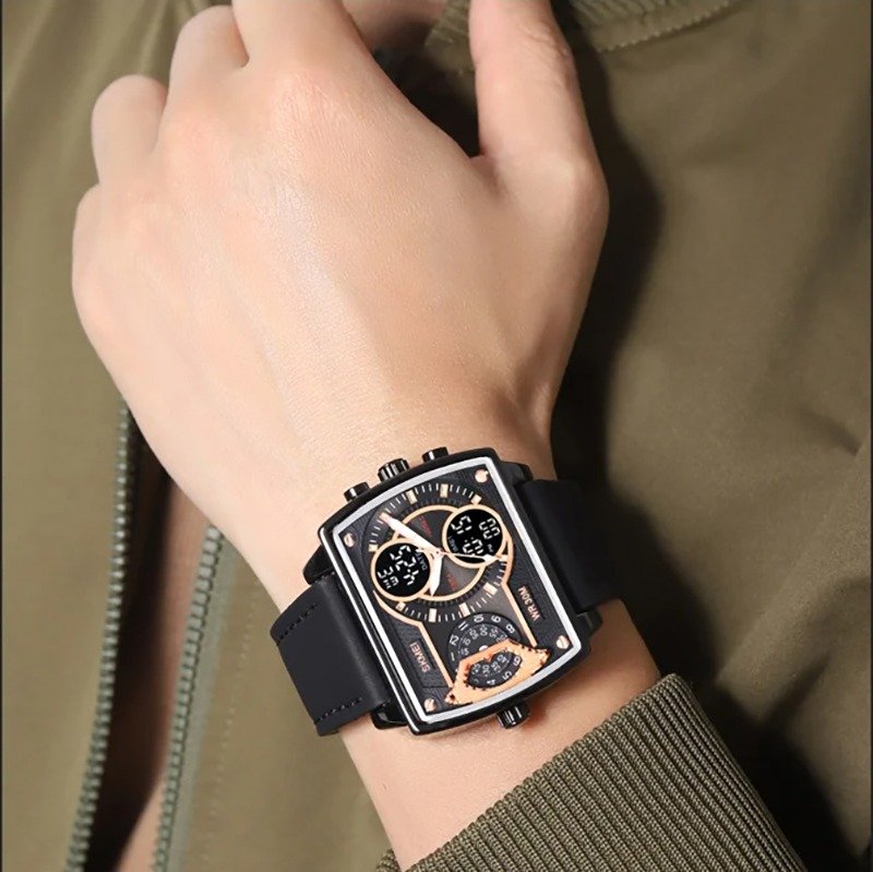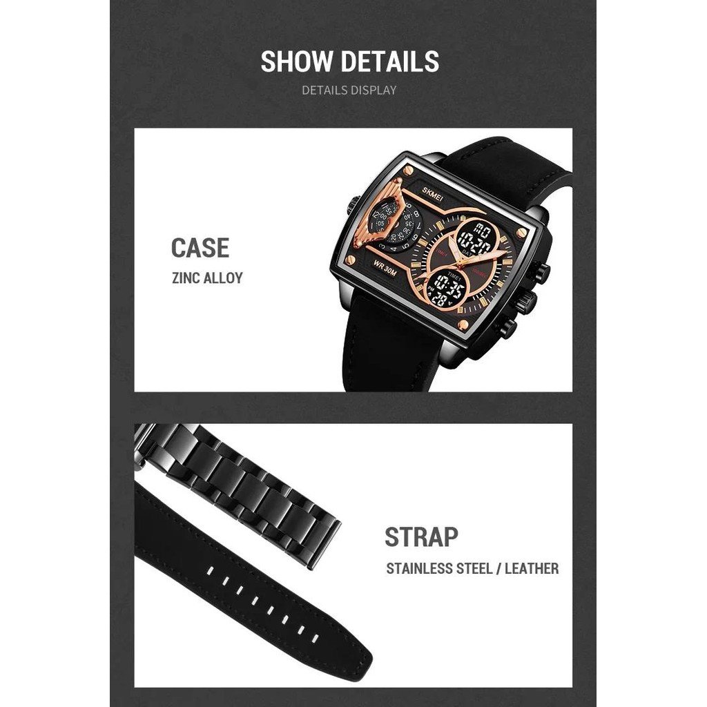 SKMEI 2229 Multi-Zone Analog Digital Sports Watch – Black/Black-Leather