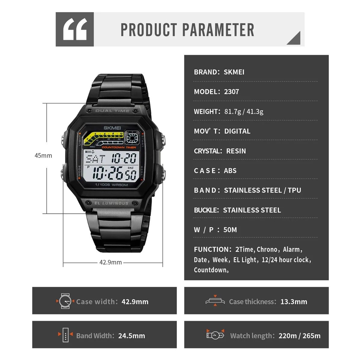 Skmei – 2307 – Digital Sports Watch – Black/Steel