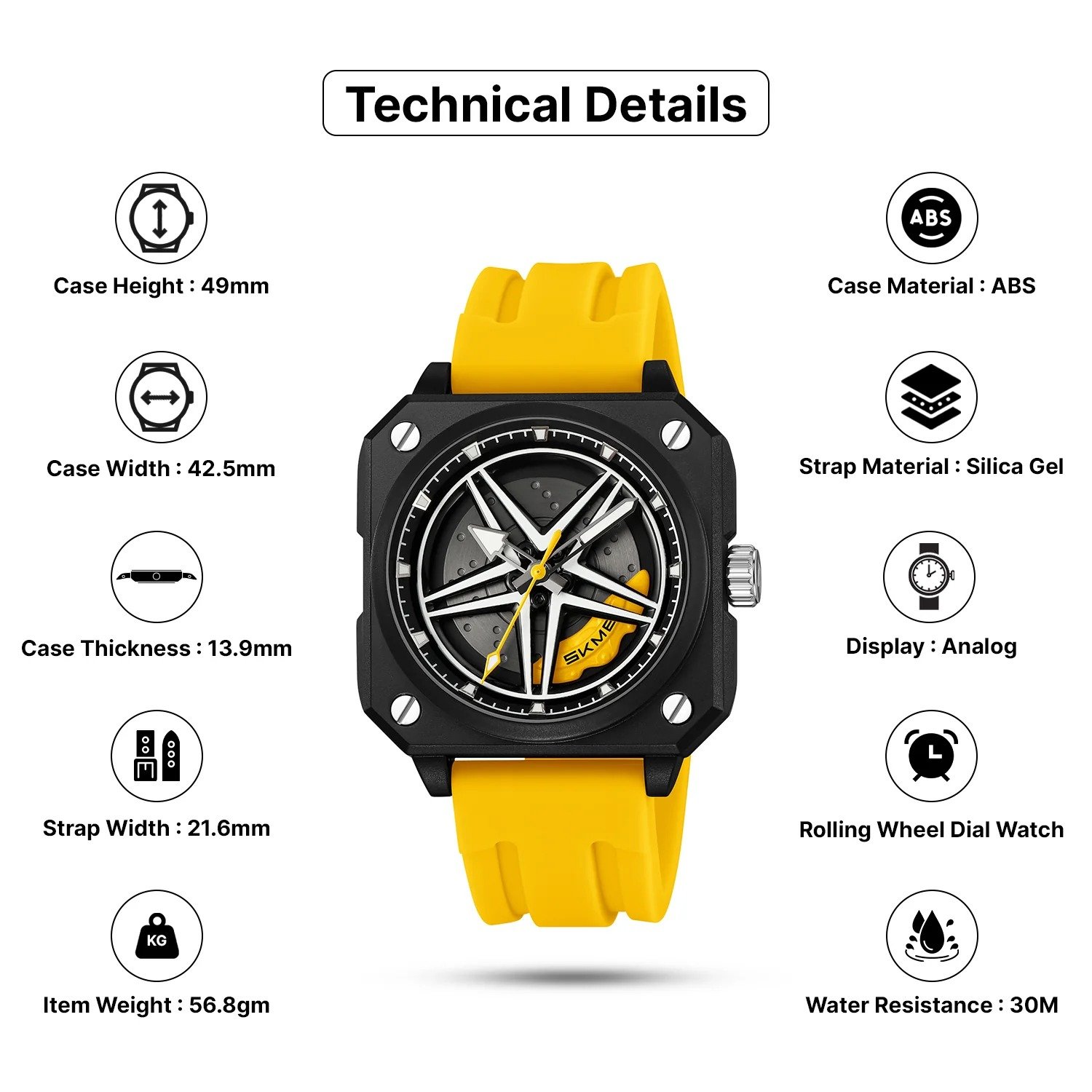 SKMEI – 2362 – Trendy Wheel Spinner Quartz Silicon Strap – Yellow