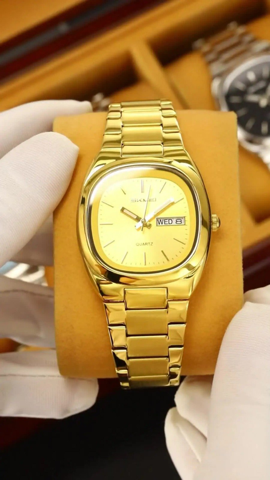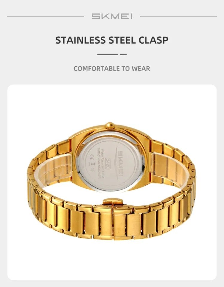 SKMEI 2420 Unisex Analog Quartz Day-Date Watch – Gold/Gold