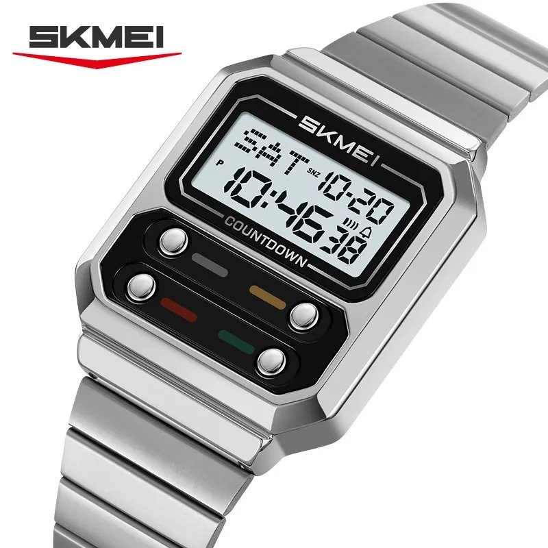 SKMEI 2448 Vintage Square Digital Stainless Steel Watch – silver-white