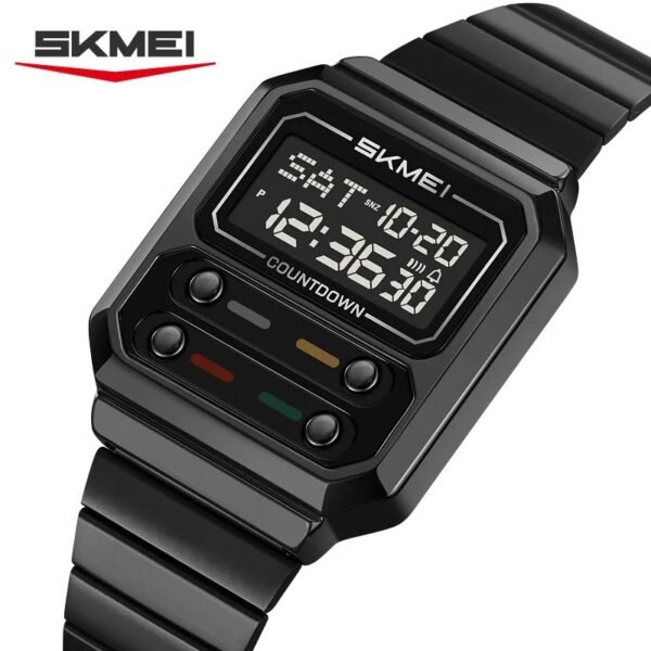 ⌚ SKMEI 2448 – Slim Retro Digital Watch ⚙️ Movement: Digital⚖️ Weight: 75.8g🔍 Crystal: Glass🧱 Case: Zinc Alloy🔗 Band: Stainless Steel🔒 Buckle: Stainless Steel💧 Waterproof: 30M📐 Case Size: 32.3 × 40mm📏 Thickness: 9mm📎 Band Width: 20.7mm📏 Watch Length: 235mm ✨ Functions:🕐 Dual Time (2 Time Zones) | ⏱️ Chrono⏰ Alarm | 📅 Date & Week🔦 EL Light | ⏳ Countdown Timer🕐 12/24 Hour