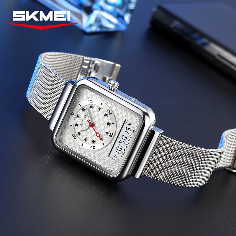 SKMEI – 2466 – Dual Display Time Quartz Watch – Silver