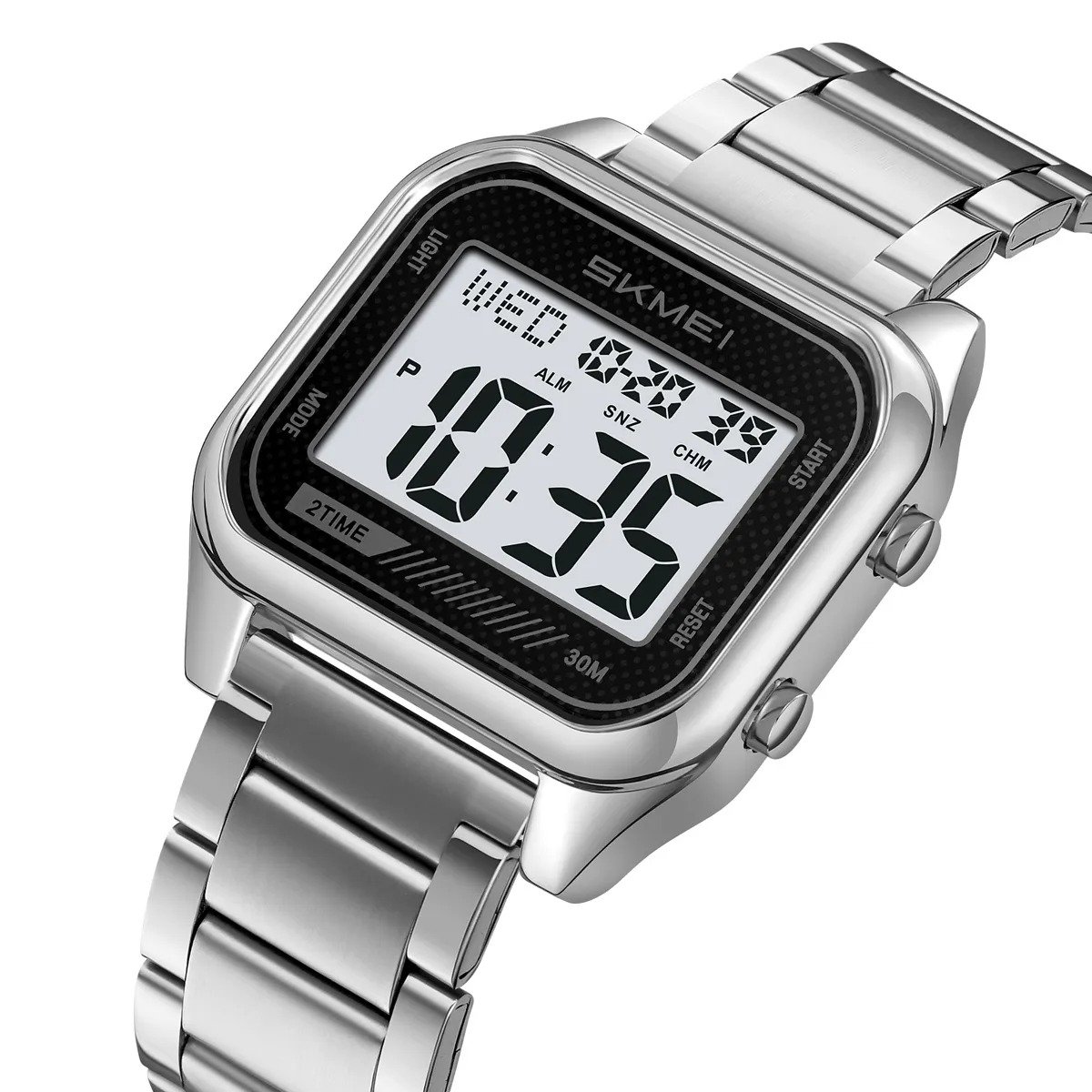 Skmei – 2478 – Digital Sports Stainless Steel Watch – Silver/White