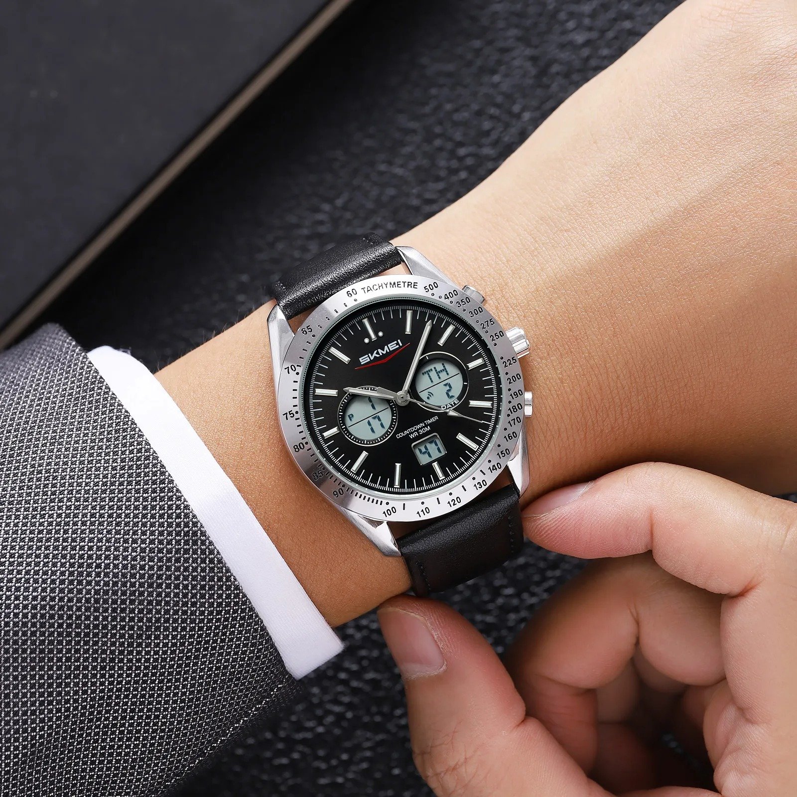 SKMEI 2503 Digital Tachymetre Countdown Timer Watch – silver/black/white/leather