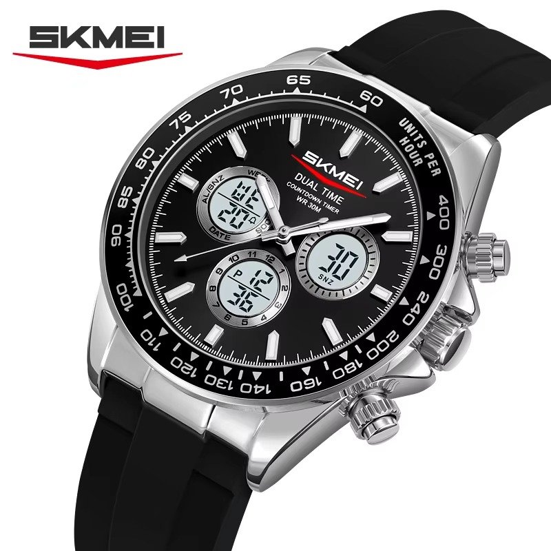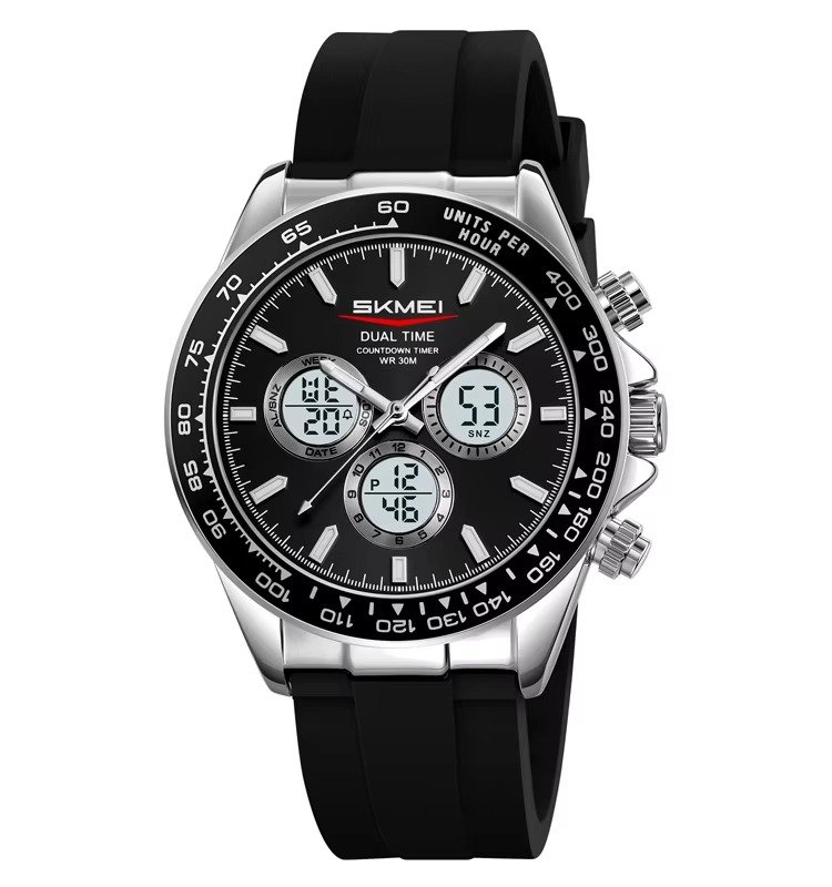 SKMEI – 2505 – Electronic Quartz Dual Display Watch – Silver/Black-SilicaGel
