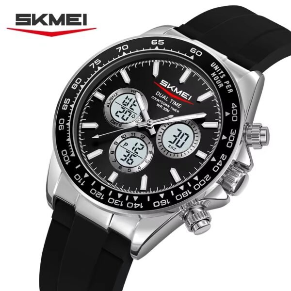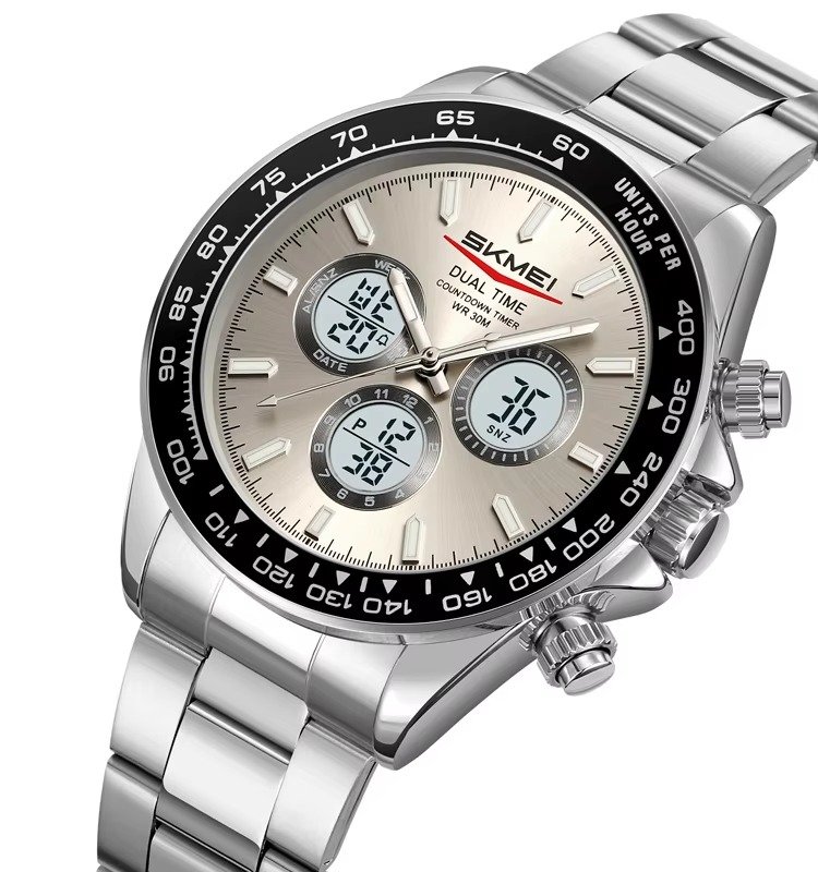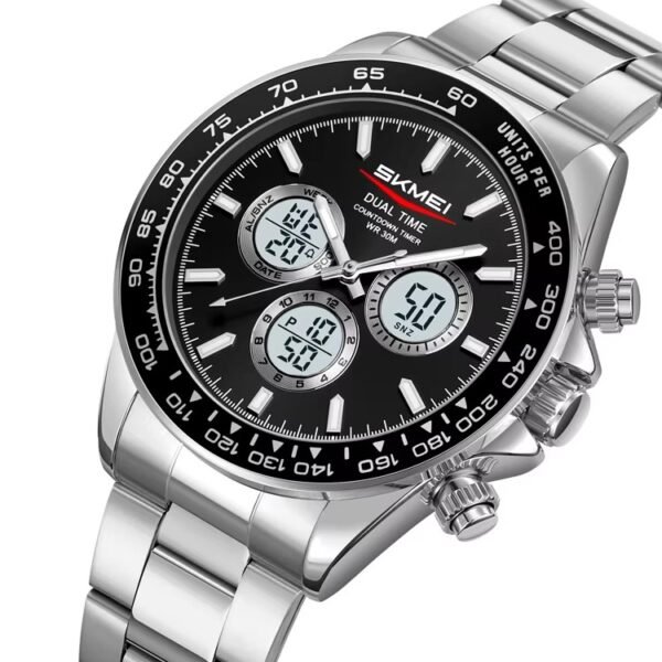 SKMEI – 2505 – Electronic Quartz Dual Display Watch – Silver/Grey-Steel