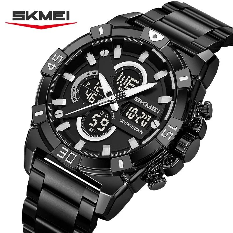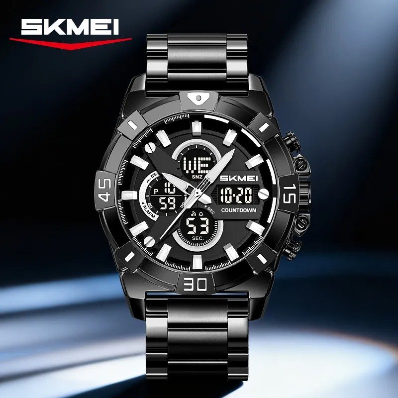 ⌚ SKMEI 2593 – Analog + Digital Heavy Duty Watch ⚙️ Movement: Digital⚖️ Weight: 185.2g🔍 Crystal: Glass🧱 Case: Zinc Alloy🔗 Band: Stainless Steel🔒 Buckle: Stainless Steel💧 Waterproof: 30M📐 Case Size: 50.8 × 59mm📏 Thickness: 15.6mm📎 Band Width: 23.6mm📏 Watch Length: 220mm ✨ Functions:🕐 3 Time Zones | ⏱️ Chrono | 📅 Date & Week💡 LED Light | ⏳ Countdown | 🕐 12/24 Hour