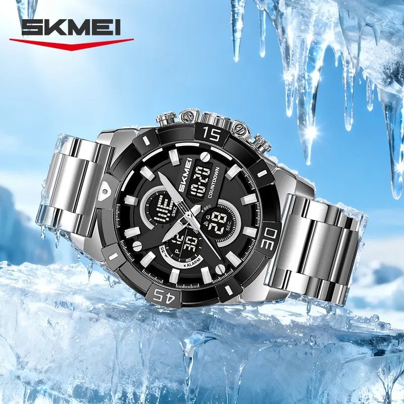 ⌚ SKMEI 2593 – Analog + Digital Heavy Duty Watch ⚙️ Movement: Digital⚖️ Weight: 185.2g🔍 Crystal: Glass🧱 Case: Zinc Alloy🔗 Band: Stainless Steel🔒 Buckle: Stainless Steel💧 Waterproof: 30M📐 Case Size: 50.8 × 59mm📏 Thickness: 15.6mm📎 Band Width: 23.6mm📏 Watch Length: 220mm ✨ Functions:🕐 3 Time Zones | ⏱️ Chrono | 📅 Date & Week💡 LED Light | ⏳ Countdown | 🕐 12/24 Hour