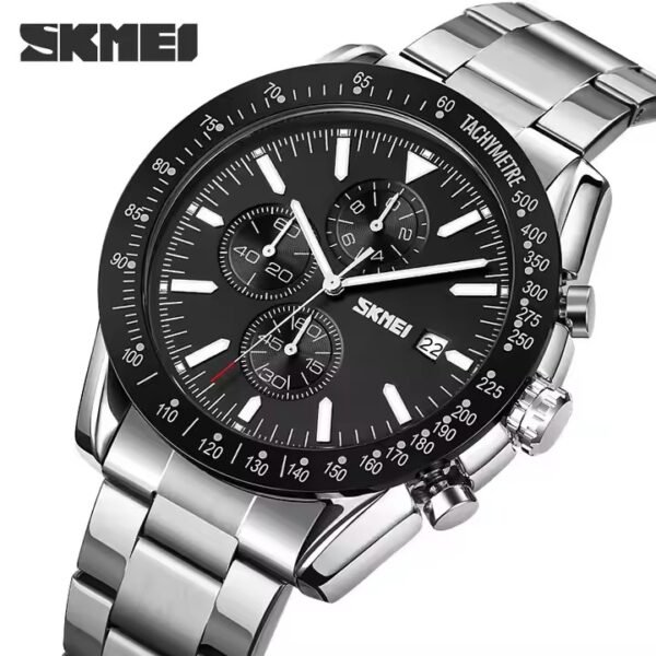 Skmei – 1584(chain) – Sports Quartz Waterproof Tiple time – Black-Steel
