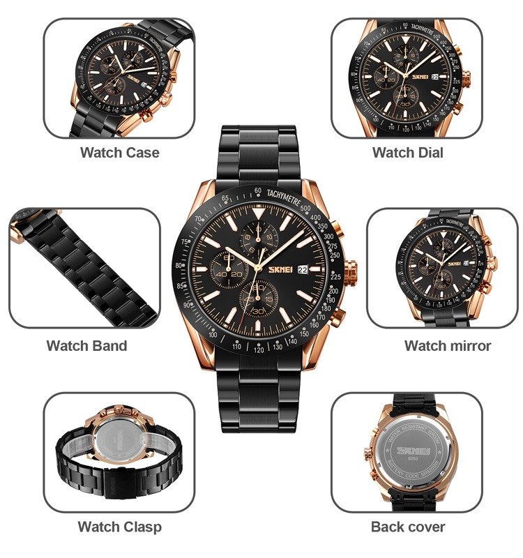 SKMEI – 9253 – Elite Chronograph Watch – Rosegold/Black-Steel