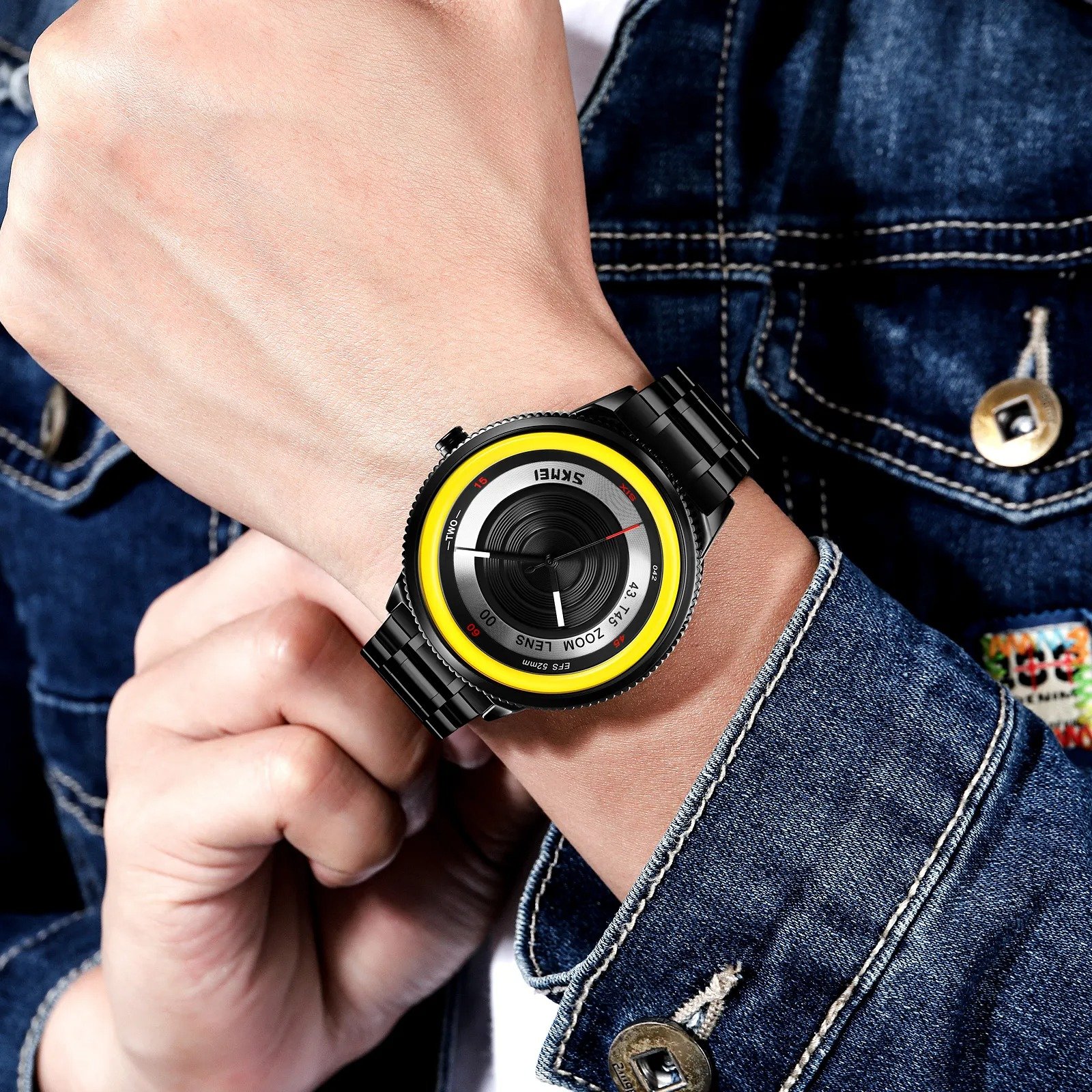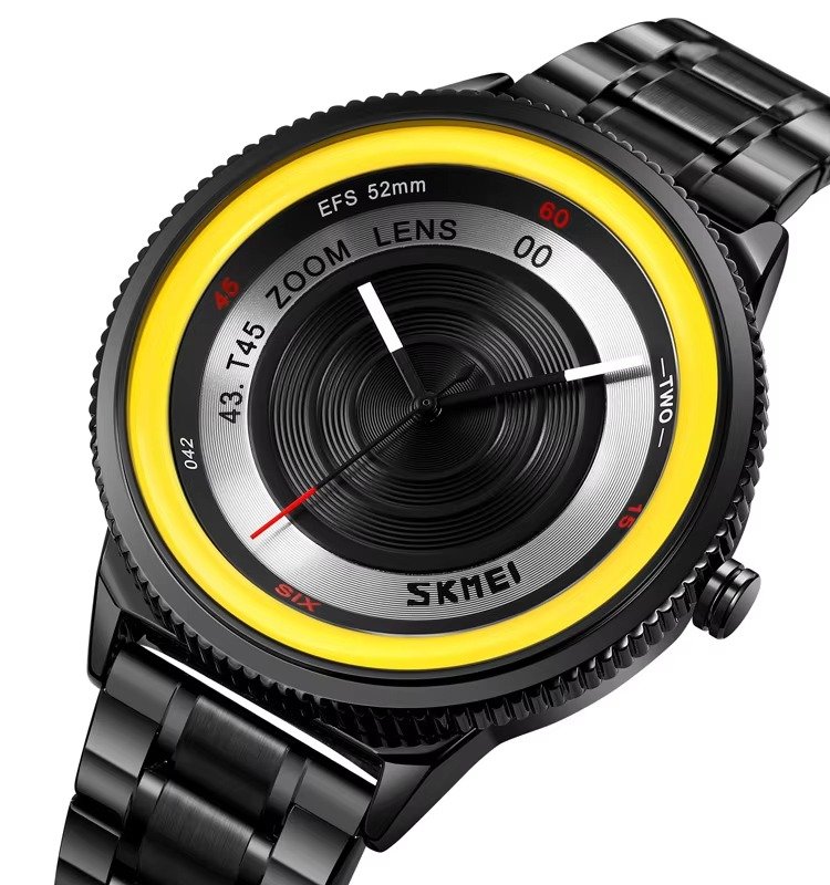 SKMEI – 9267 – Camera Lens Inspired Unique Wristwatch – yellow