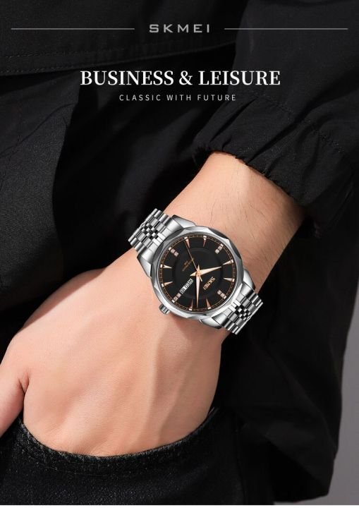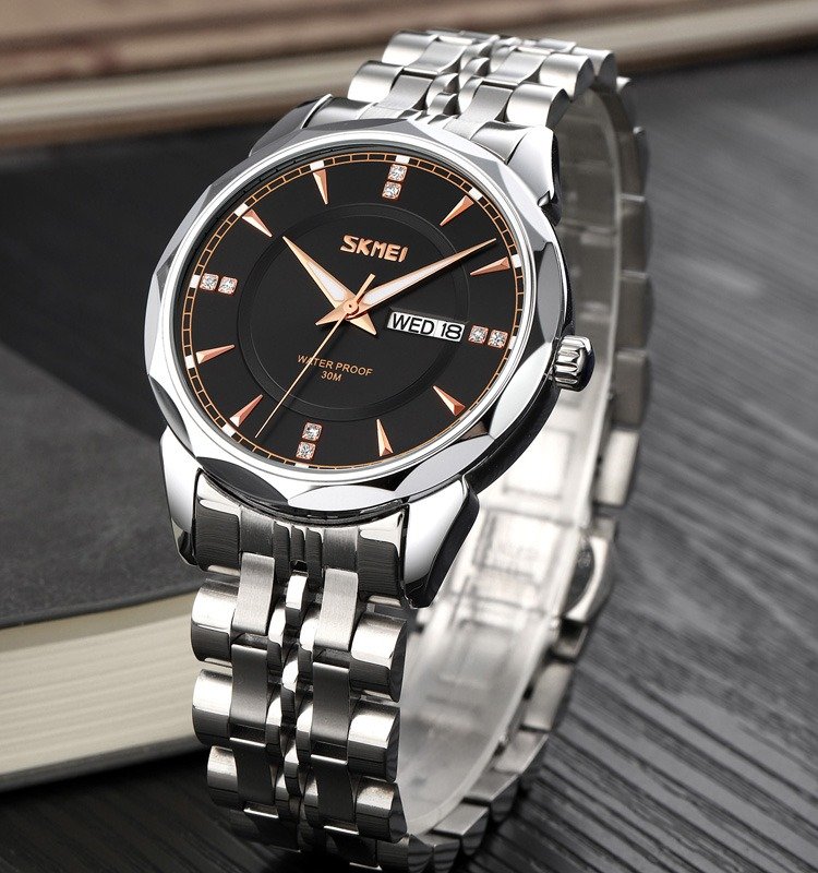 SKMEI – 9268 – Quartz Stainless Steel Luxury Analog Watch – silver black