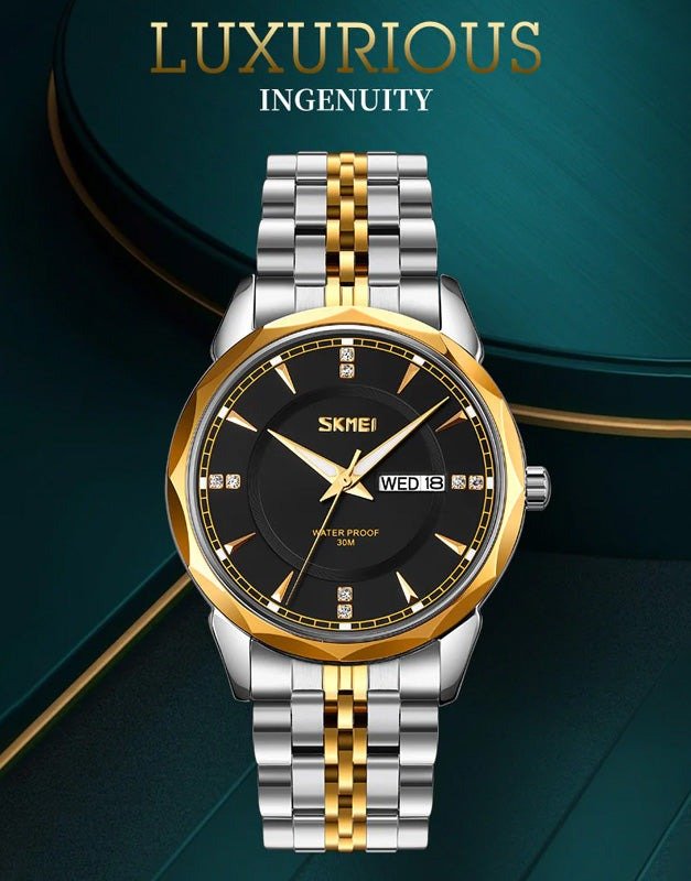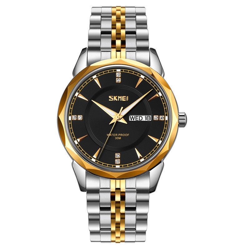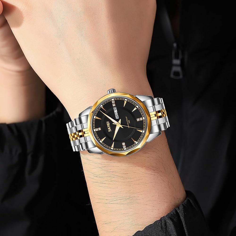 SKMEI – 9268 – Quartz Stainless Steel Luxury Analog Watch – silver/gold-black