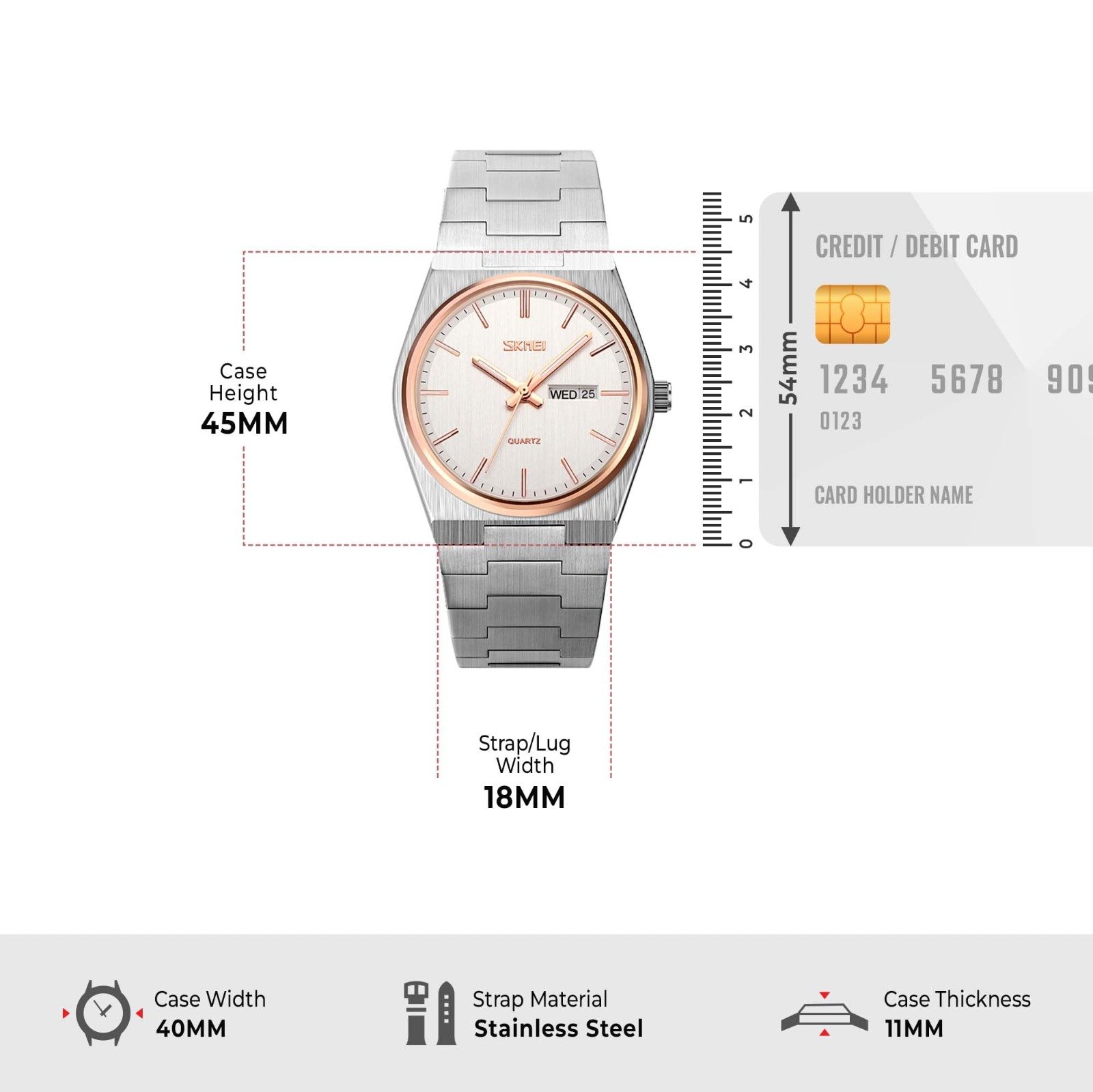Skmei – 9288 – Business Class Luxury Watch – Silver/RoseGold/Silver