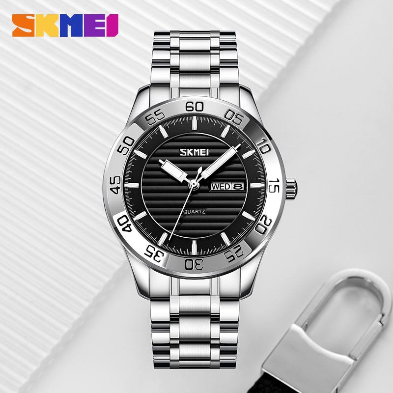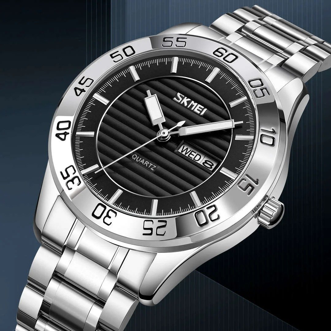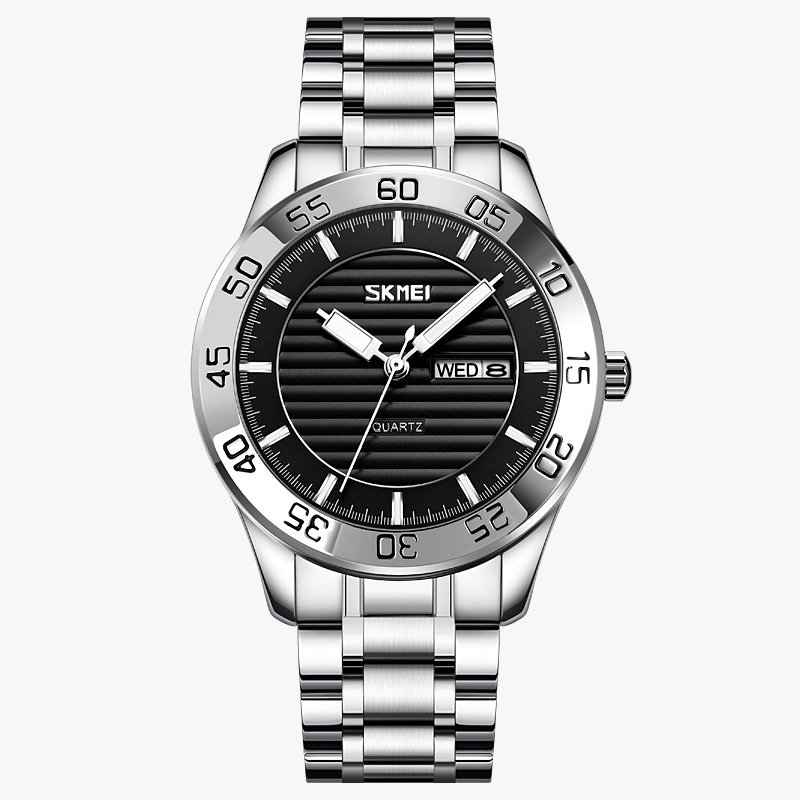 Skmei – 9293 – Premium Steel Quartz Performance Watch – silver black