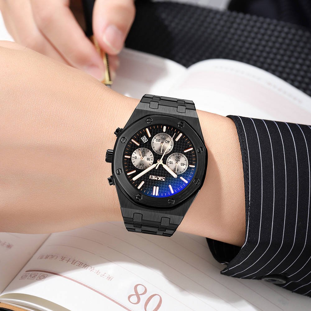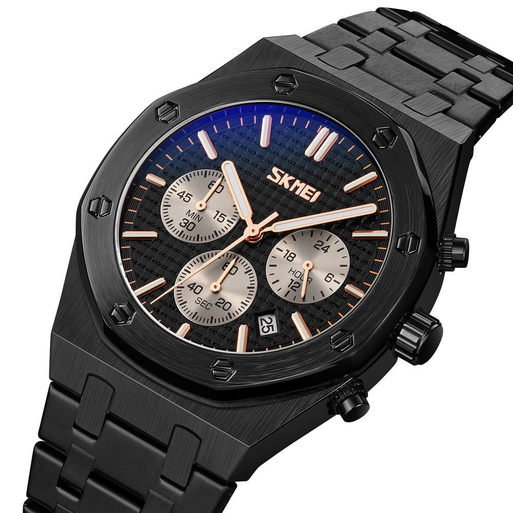SKMEI – 9296 – Analog Stainless Steel Chronograph Quartz Watch – black/black
