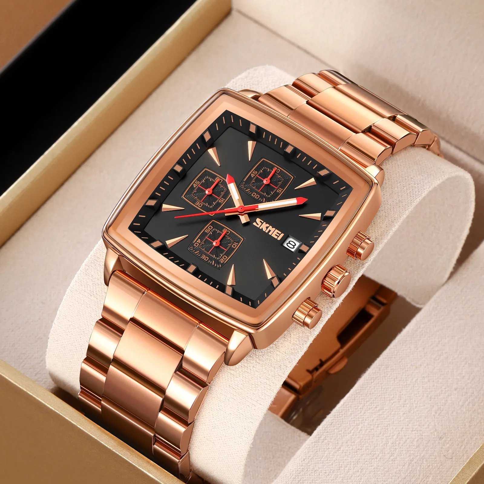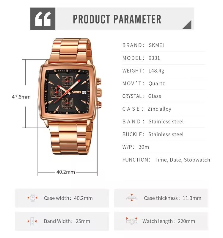 SKMEI – 9331 – Luxury Chronograph Wr30m Waterpoof Quartz – Rosegold/Black