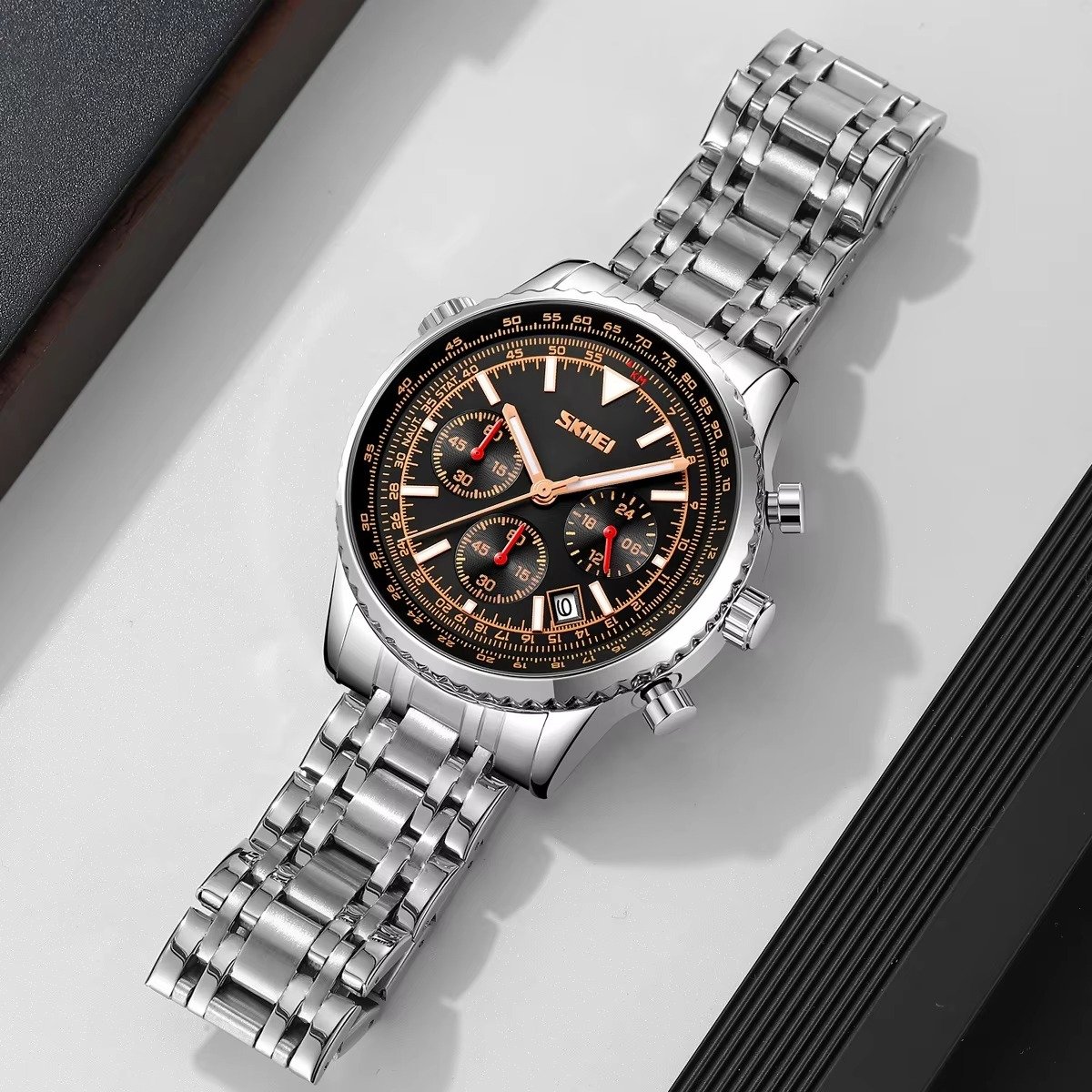 SKMEI 9333 Analog Chronograph Stainless Steel Watch – Silver/Black