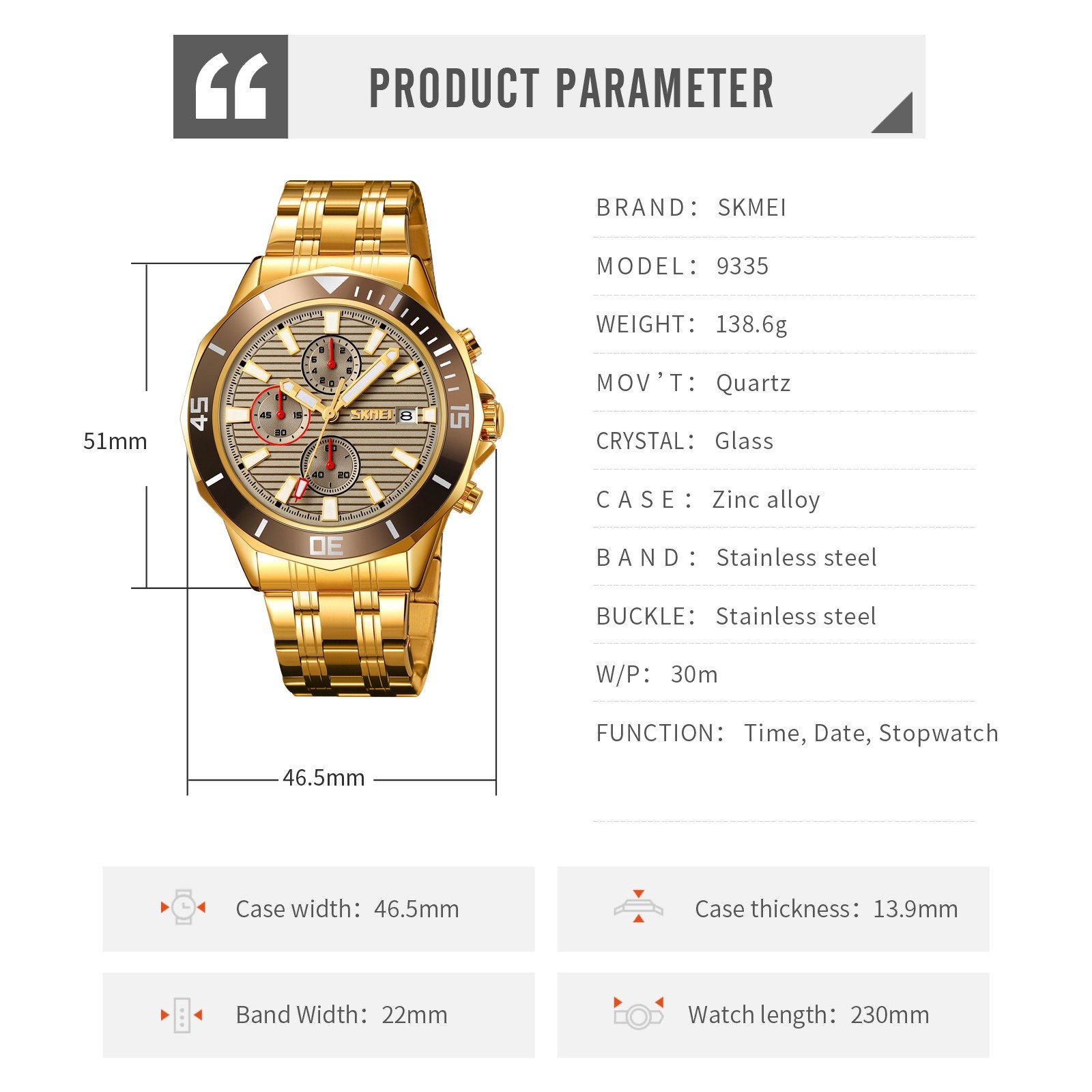 SKMEI – 9335 – Luxury Quartz Chronograph Stainless Steel Watch – gold/gray