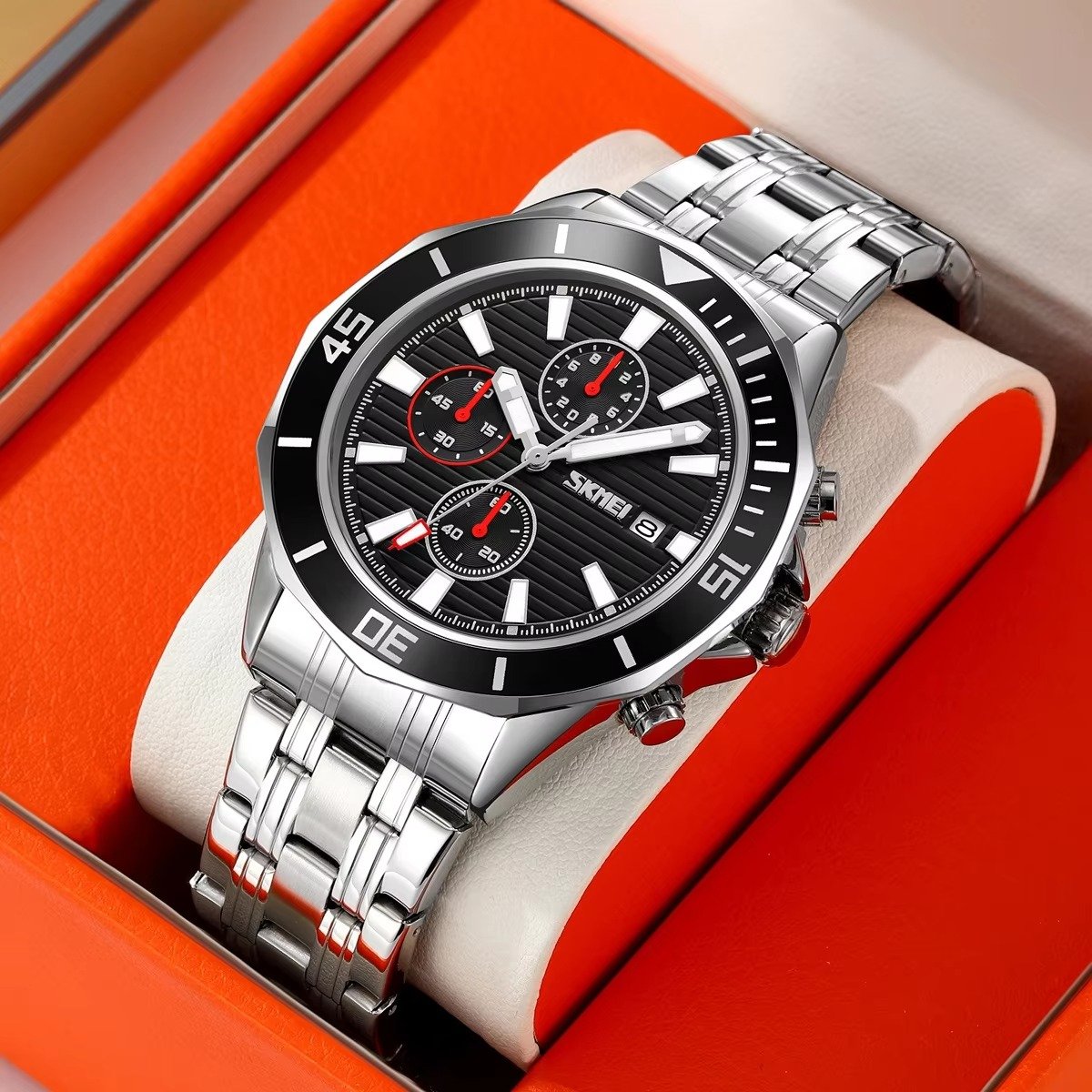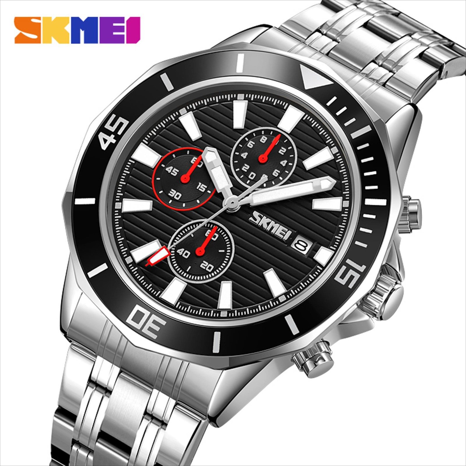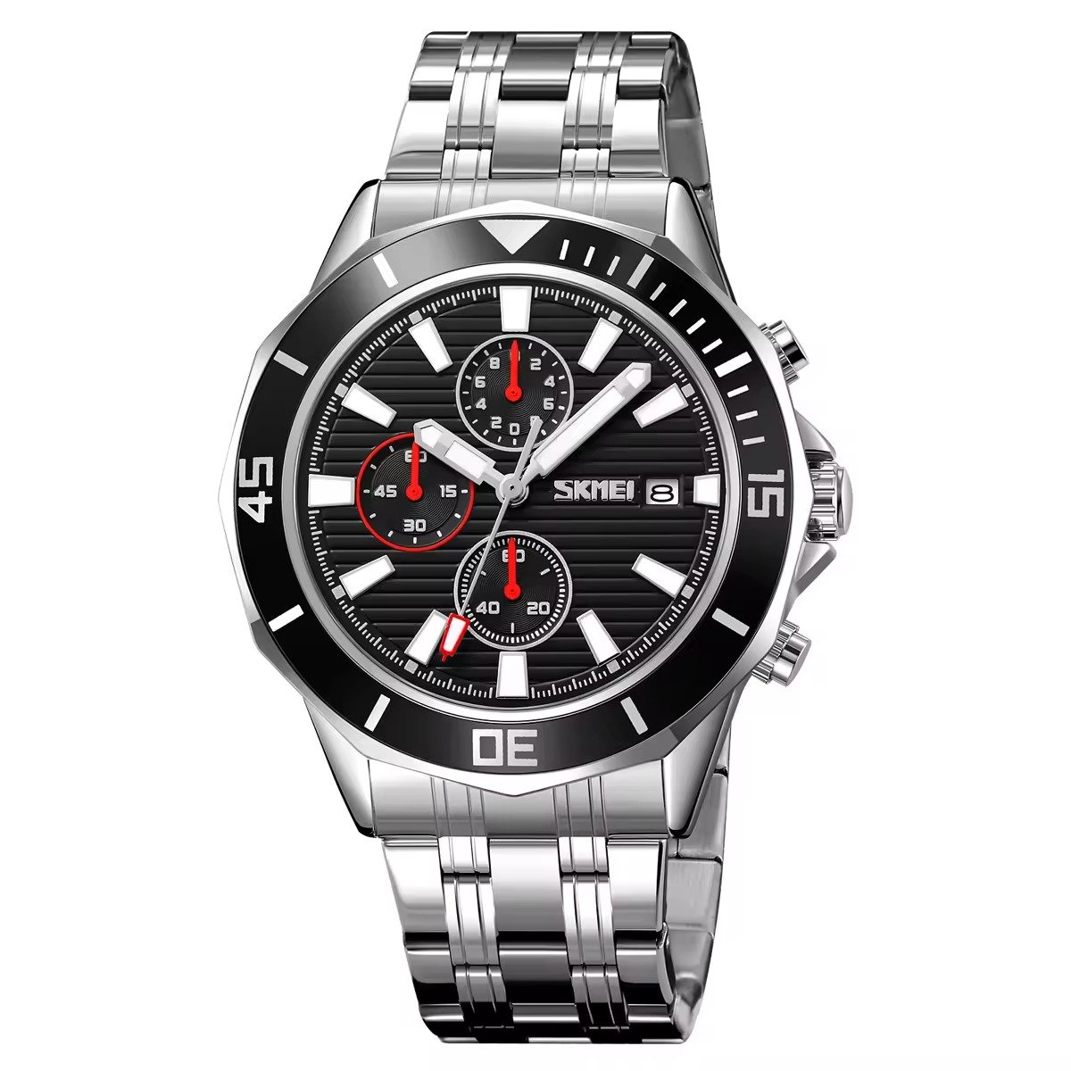SKMEI – 9335 – Luxury Quartz Chronograph Stainless Steel Watch – silver/black