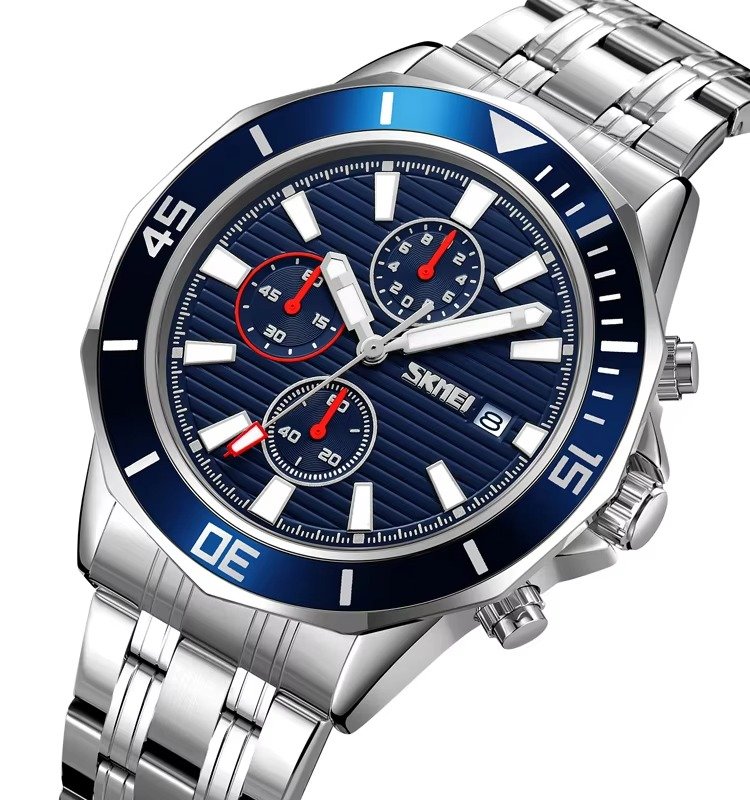 SKMEI – 9335 – Luxury Quartz Chronograph Stainless Steel Watch – silver/blue
