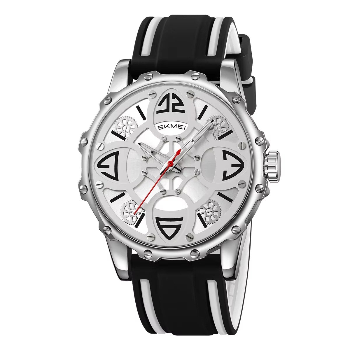⌚ SKMEI 9342 – Analog Quartz Sports Watch ⚙️ Movement: Quartz⚖️ Weight: 76.1g🔍 Crystal: Glass🧱 Case: Zinc Alloy🔗 Band: Silica Gel (Silicone)🔒 Buckle: Stainless Steel💧 Waterproof: 30M📐 Case Size: 45.5 × 54.8mm📏 Thickness: 13mm📎 Band Width: 22mm📏 Watch Length: 260mm ✨ Functions:🕐 Time Display