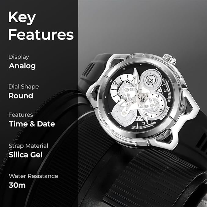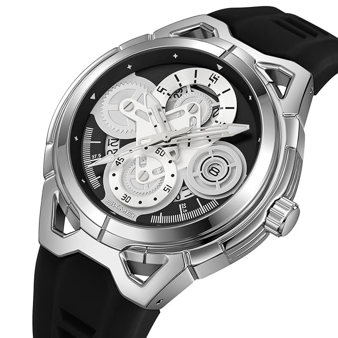SKMEI – 9349 – Silicone Quartz Luxury Watch – Silver/Black
